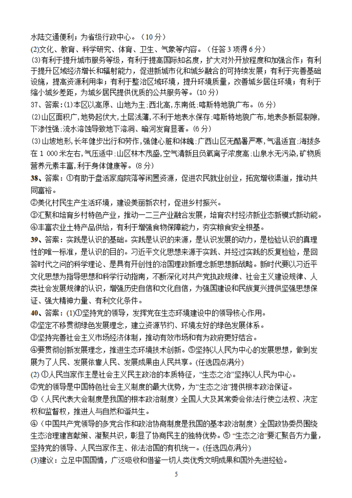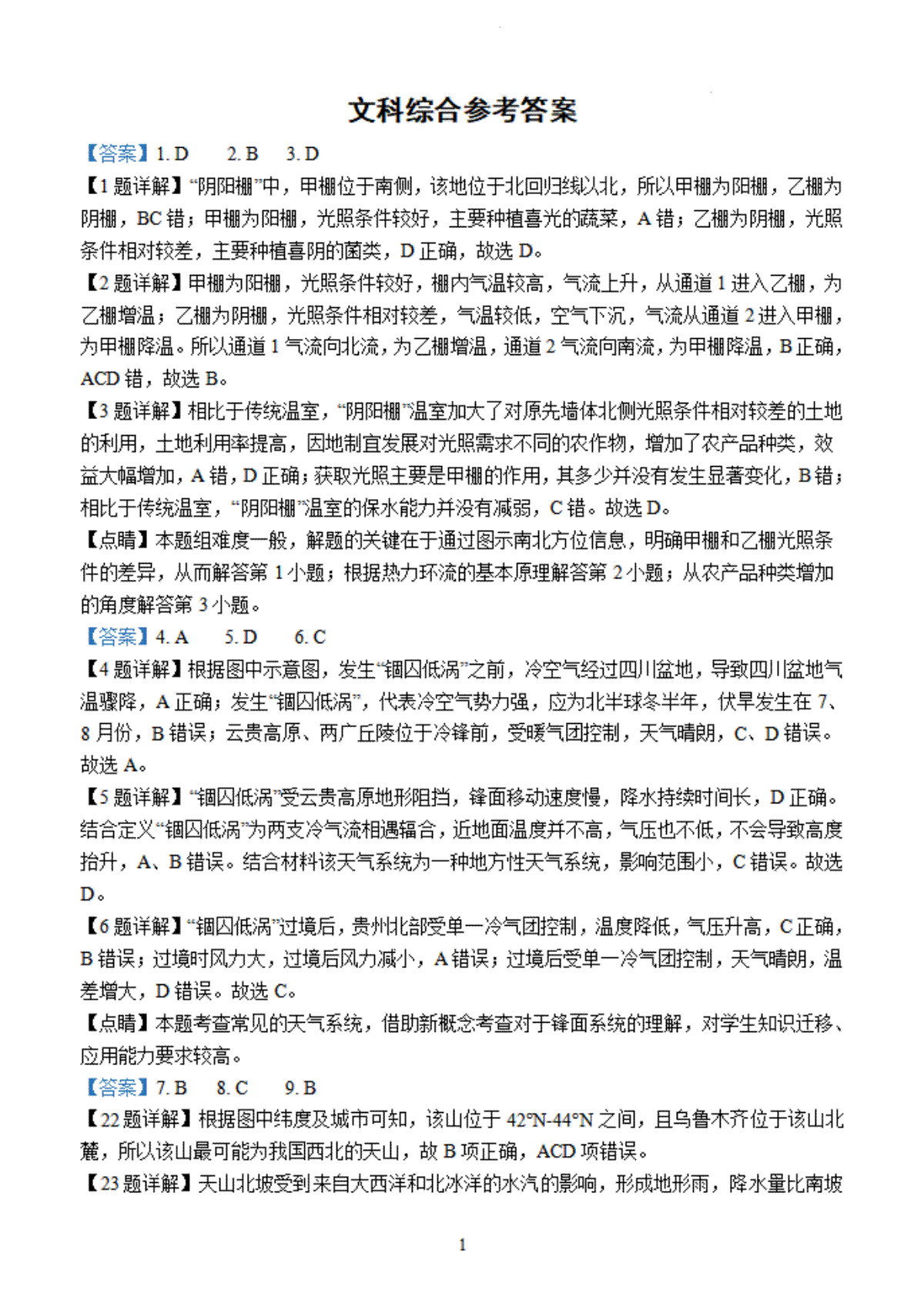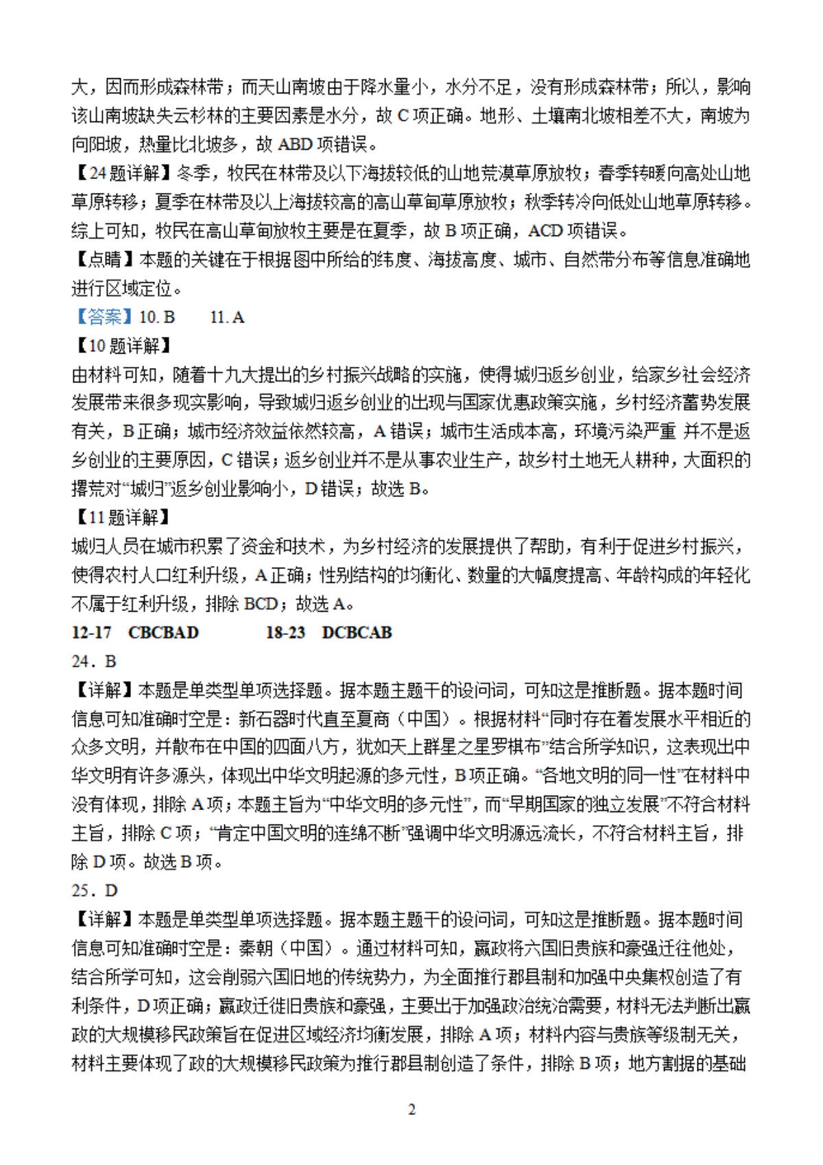 一、四川省南充市阆中中学校2023-2024学年高三上学期一模考试文综答案
