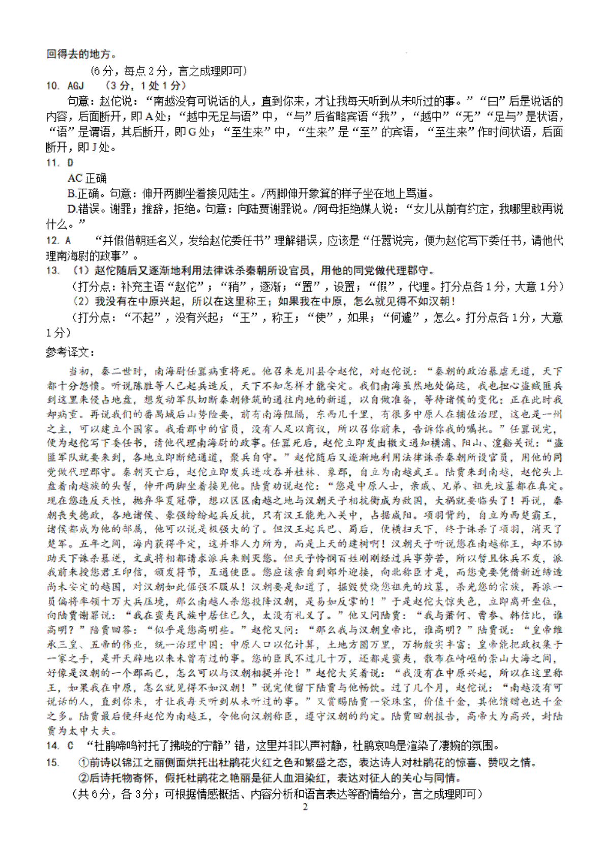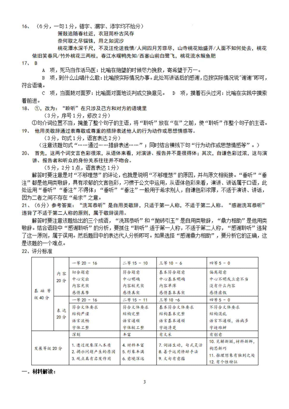 一、四川省南充市阆中中学校2023-2024学年高三上学期一模考试语文答案