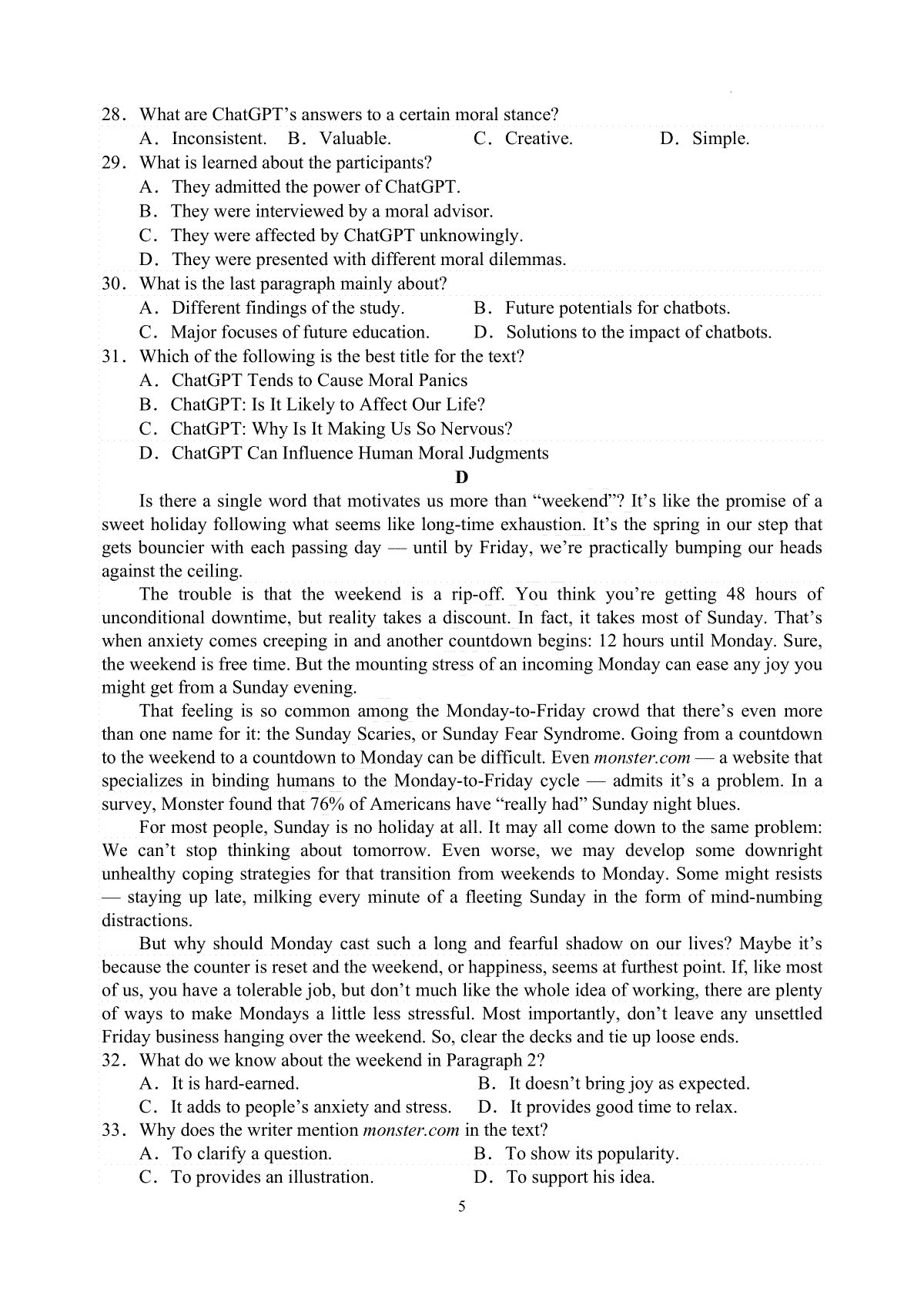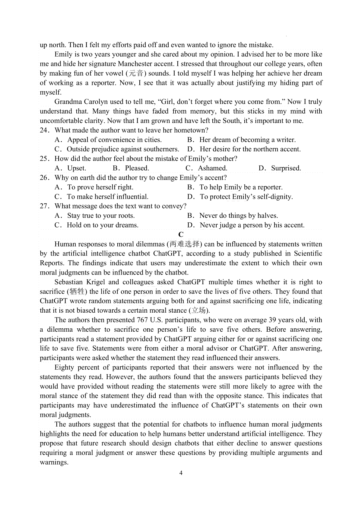 一、四川省南充市阆中中学校2023-2024学年高三上学期一模考试 英语