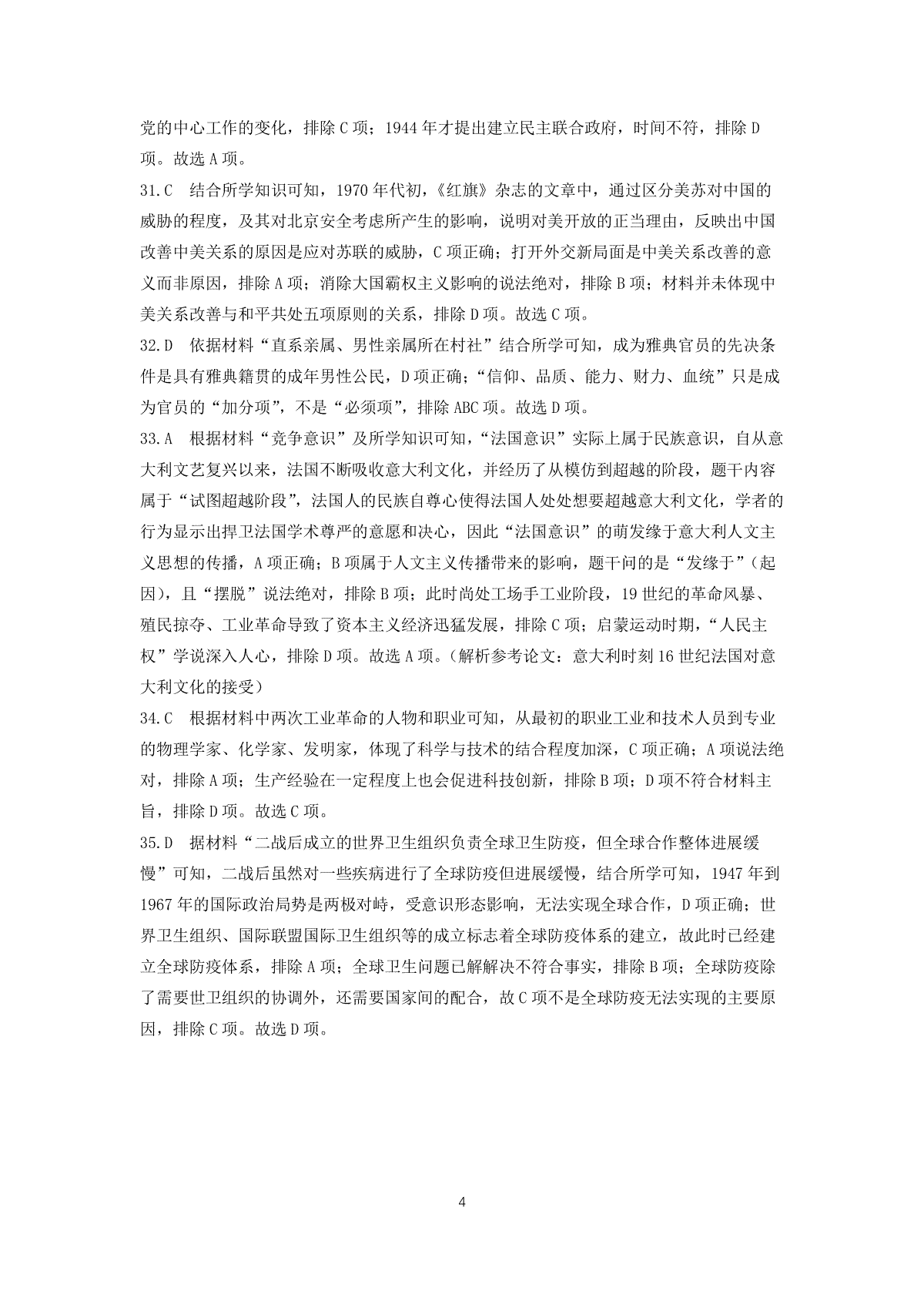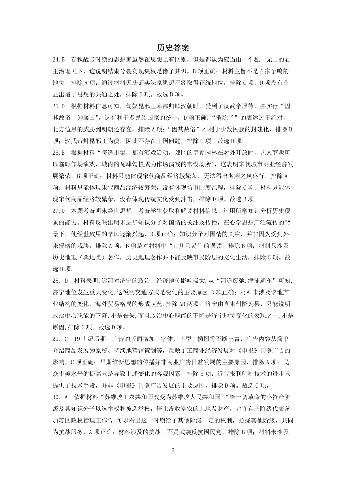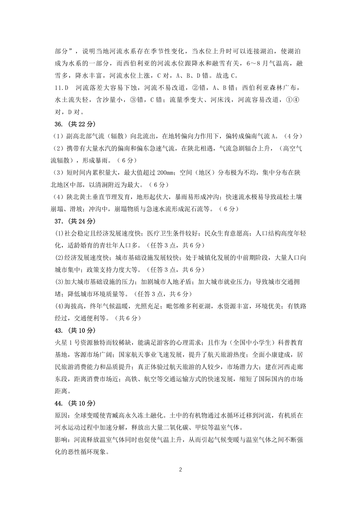 一、陕西省宝鸡实验高级中学2024届高三上学期12月联考 文综答案