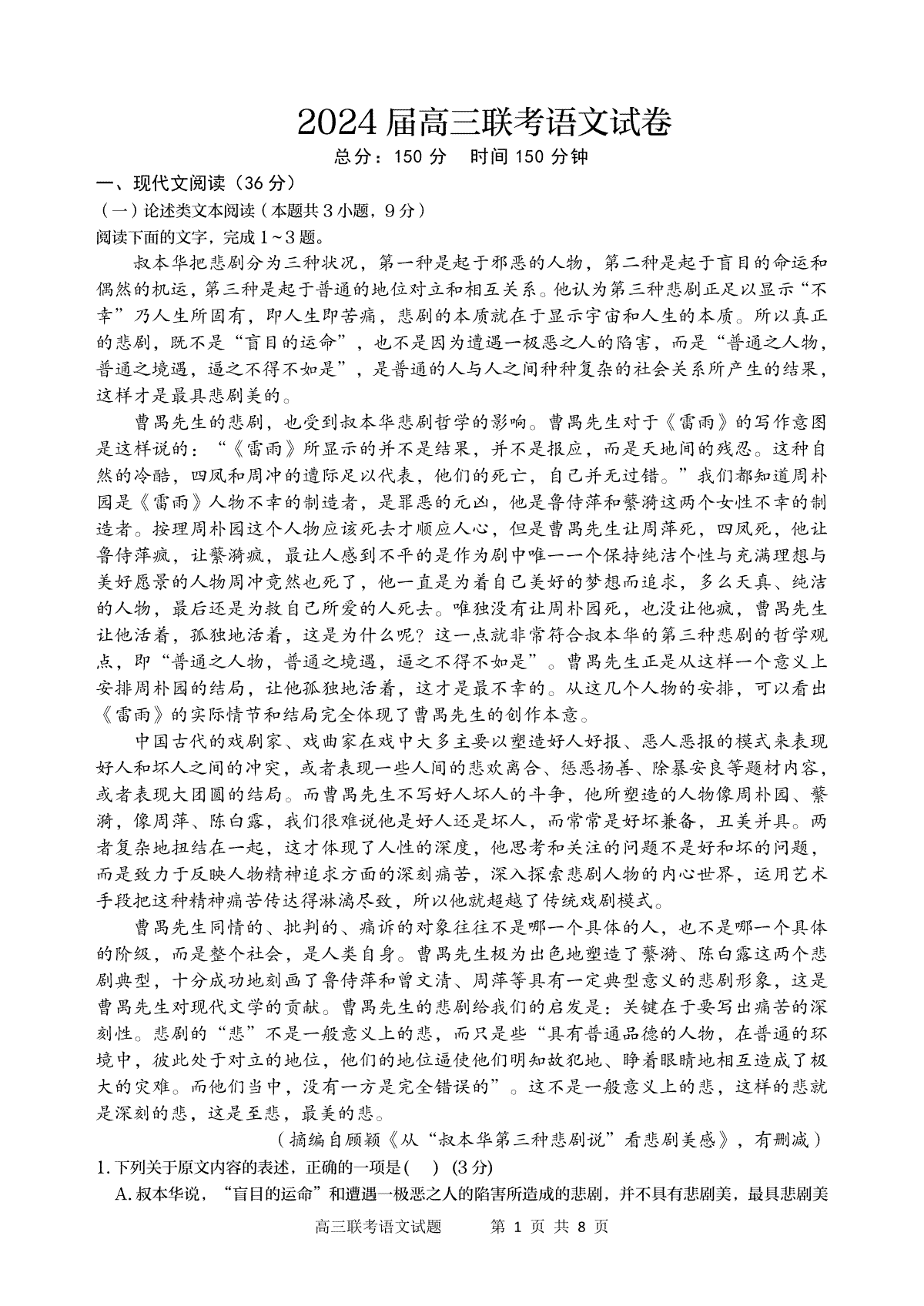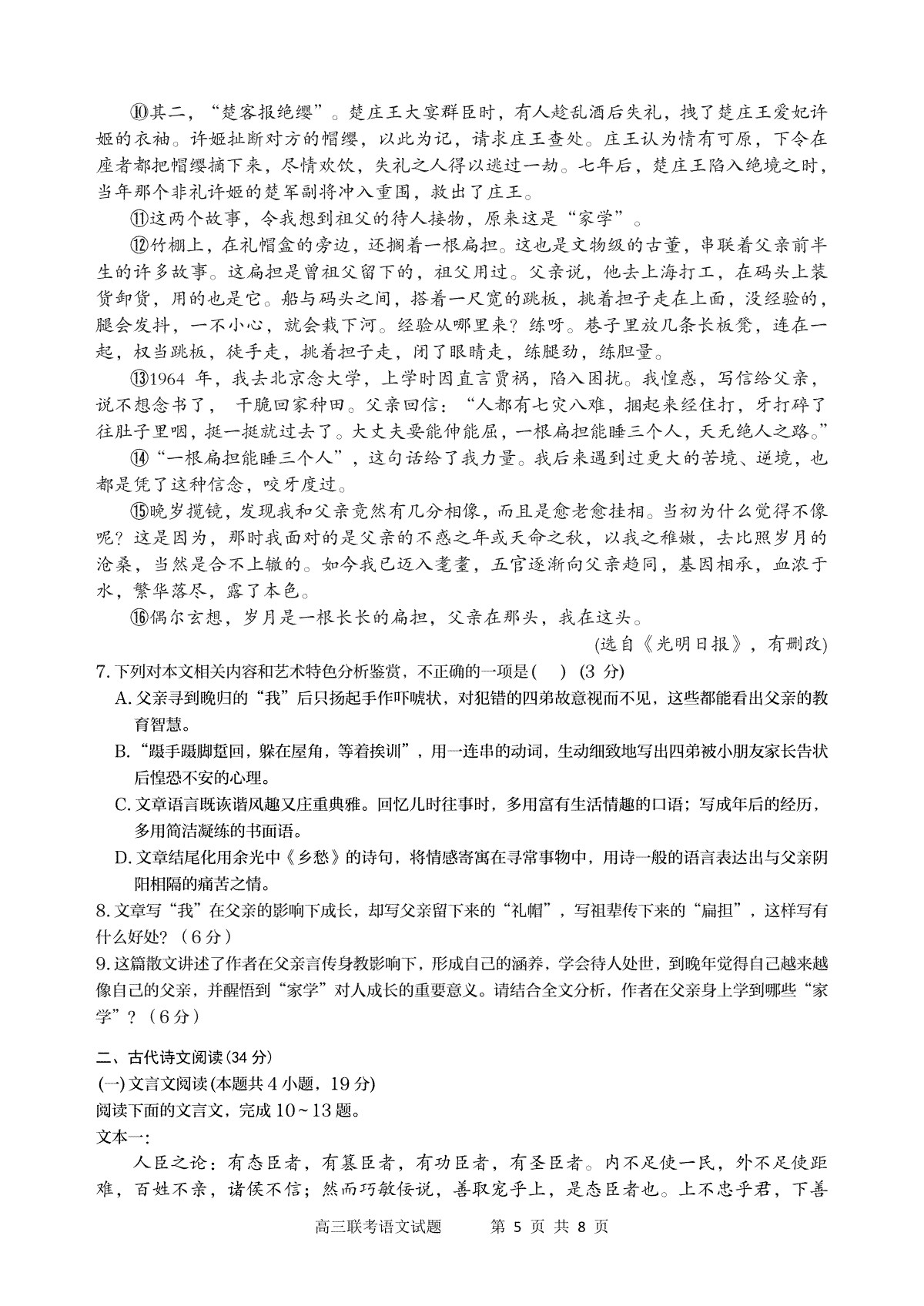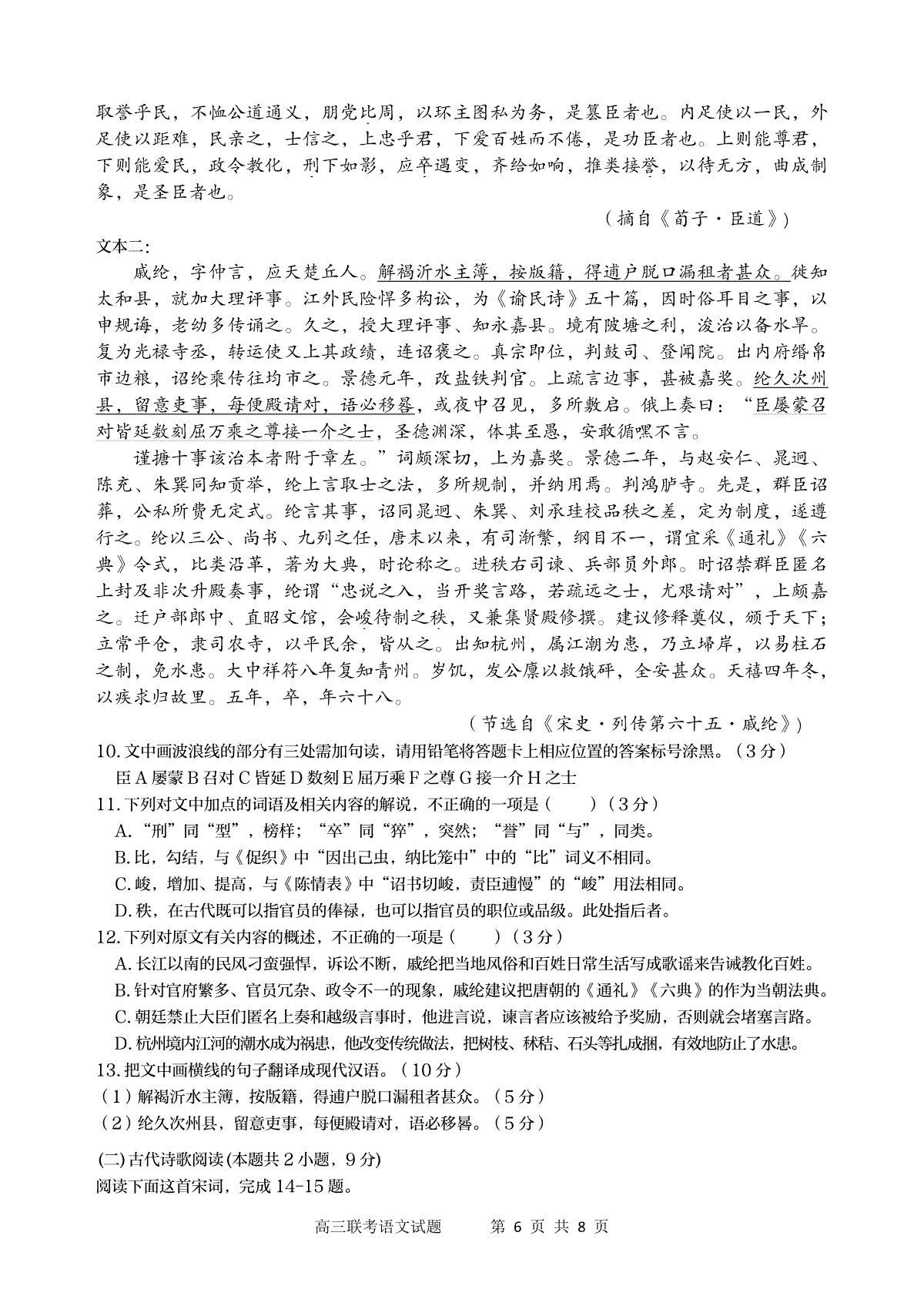 一、陕西省宝鸡实验高级中学2024届高三上学期12月联考 语文