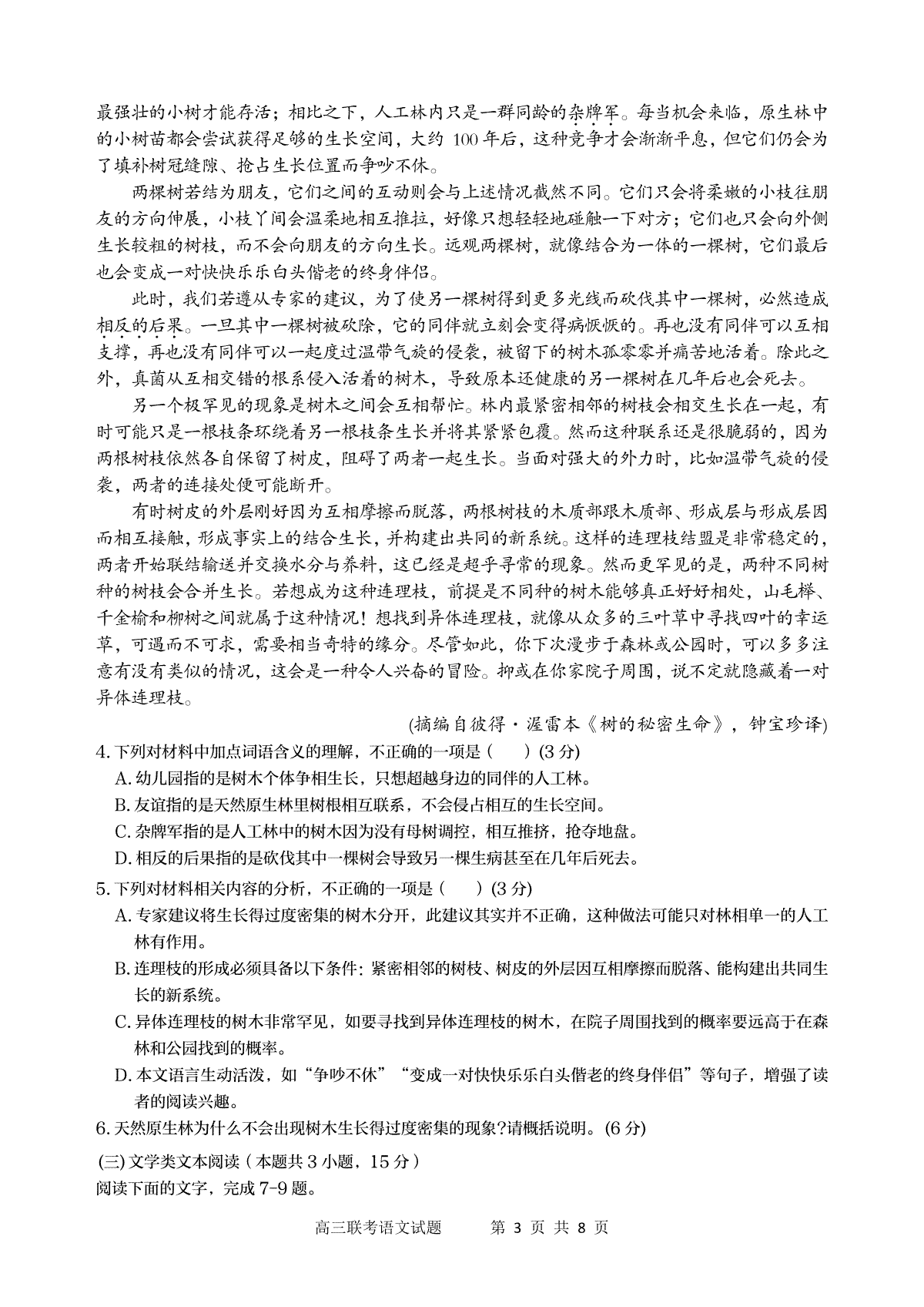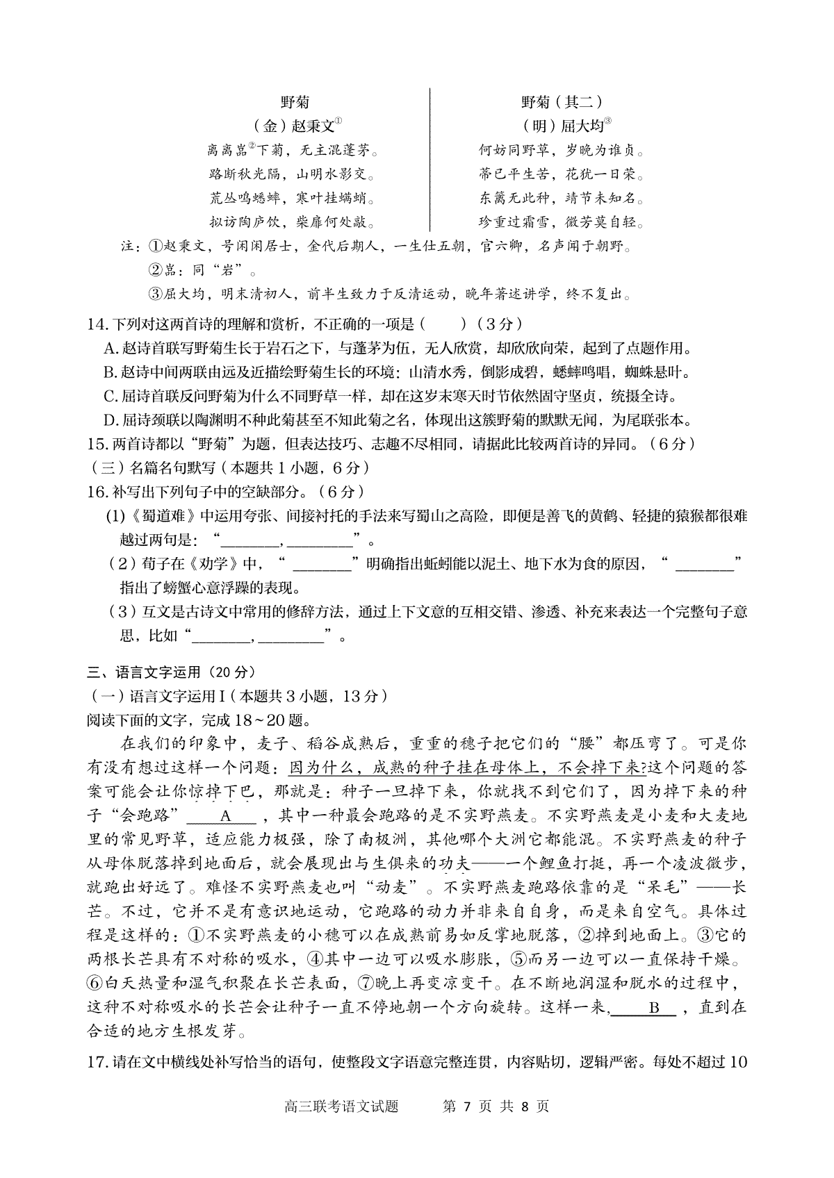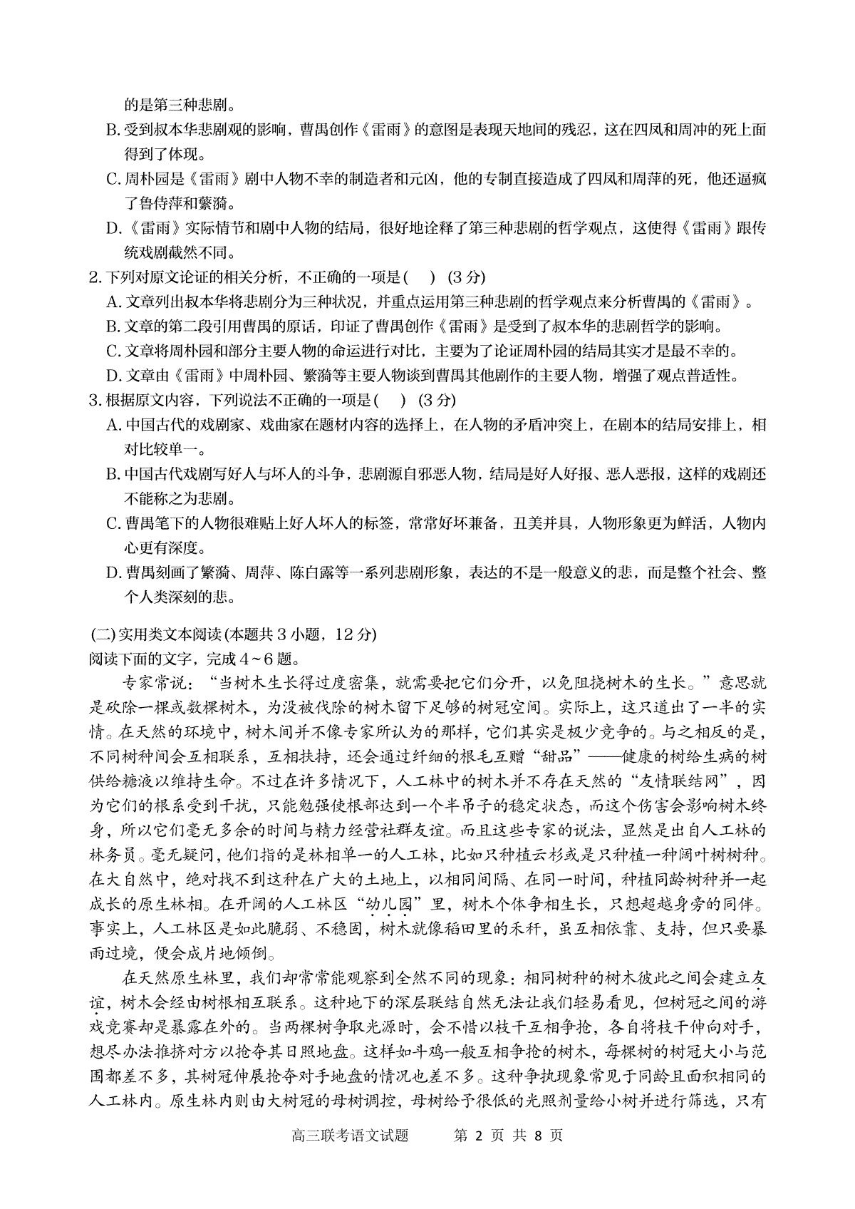 一、陕西省宝鸡实验高级中学2024届高三上学期12月联考 语文