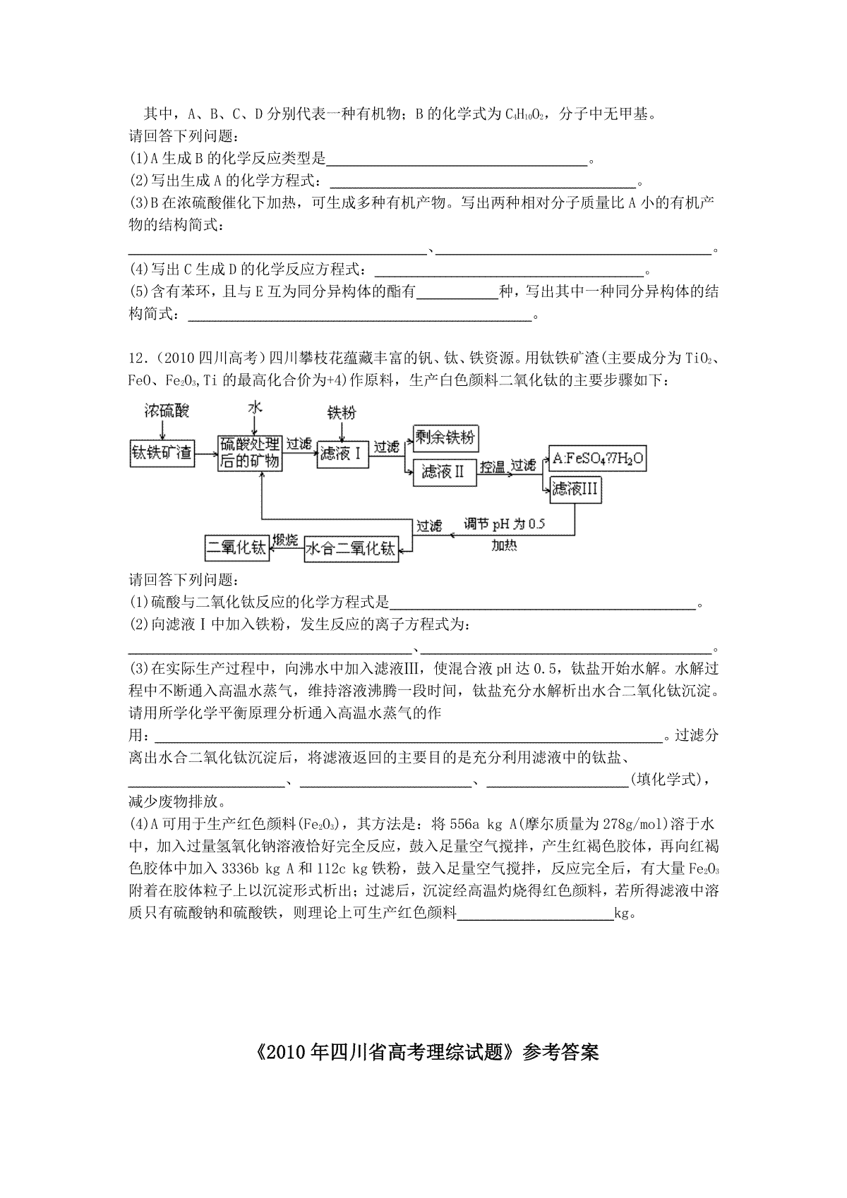 2010年高考四川理综化学试题和参考答案是广大考生都在关注的,本站就为大家带来2010年高考四川理综化学试题和参考答案试卷及答案解析详情,仅供考生参考。