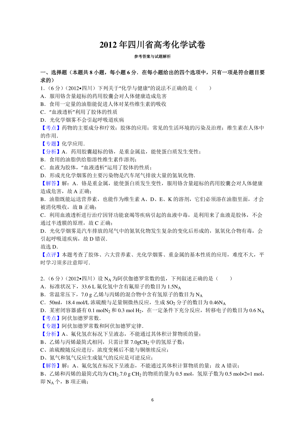 2012年高考四川理综化学试题和参考答案是广大考生都在关注的,本站就为大家带来2012年高考四川理综化学试题和参考答案试卷及答案解析详情,仅供考生参考。