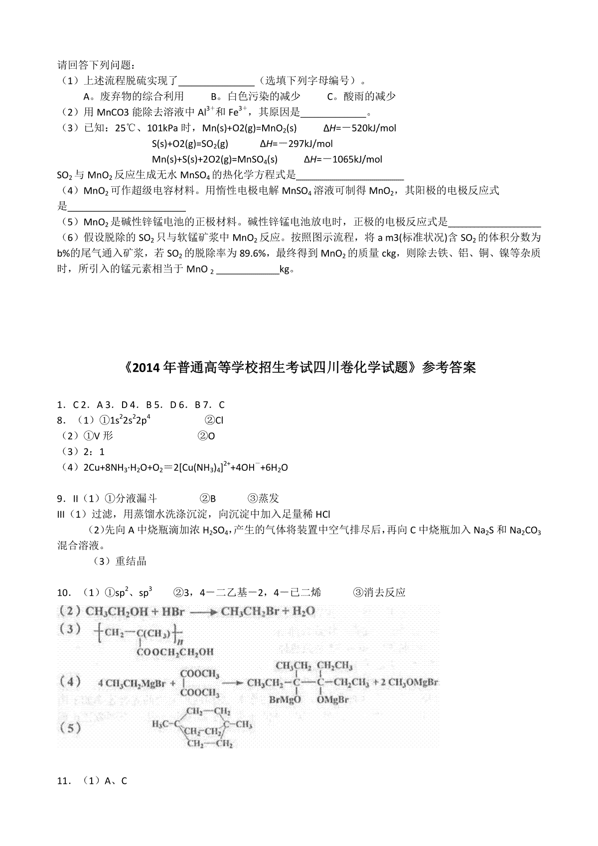 2014年高考四川理综化学试题和参考答案已公布,关注本站,本站会在2014年高考四川理综化学试题和参考答案试题及答案公布后为大家及时更新。