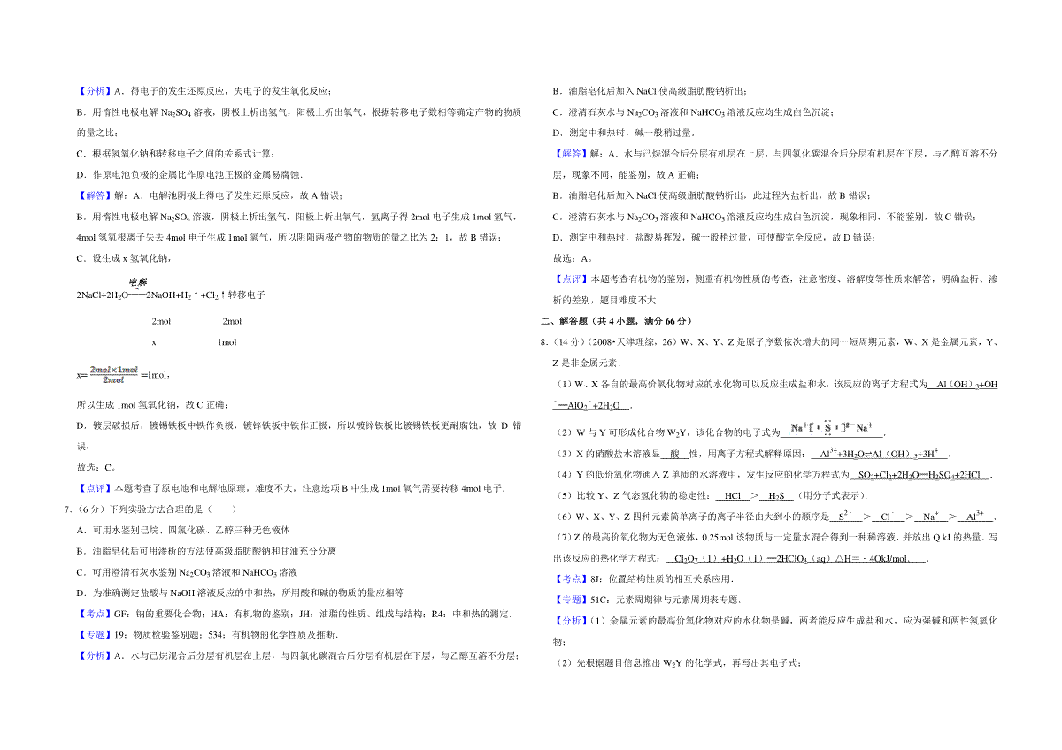 下载2008年天津市高考化学试卷解析版 PDF格式或doc