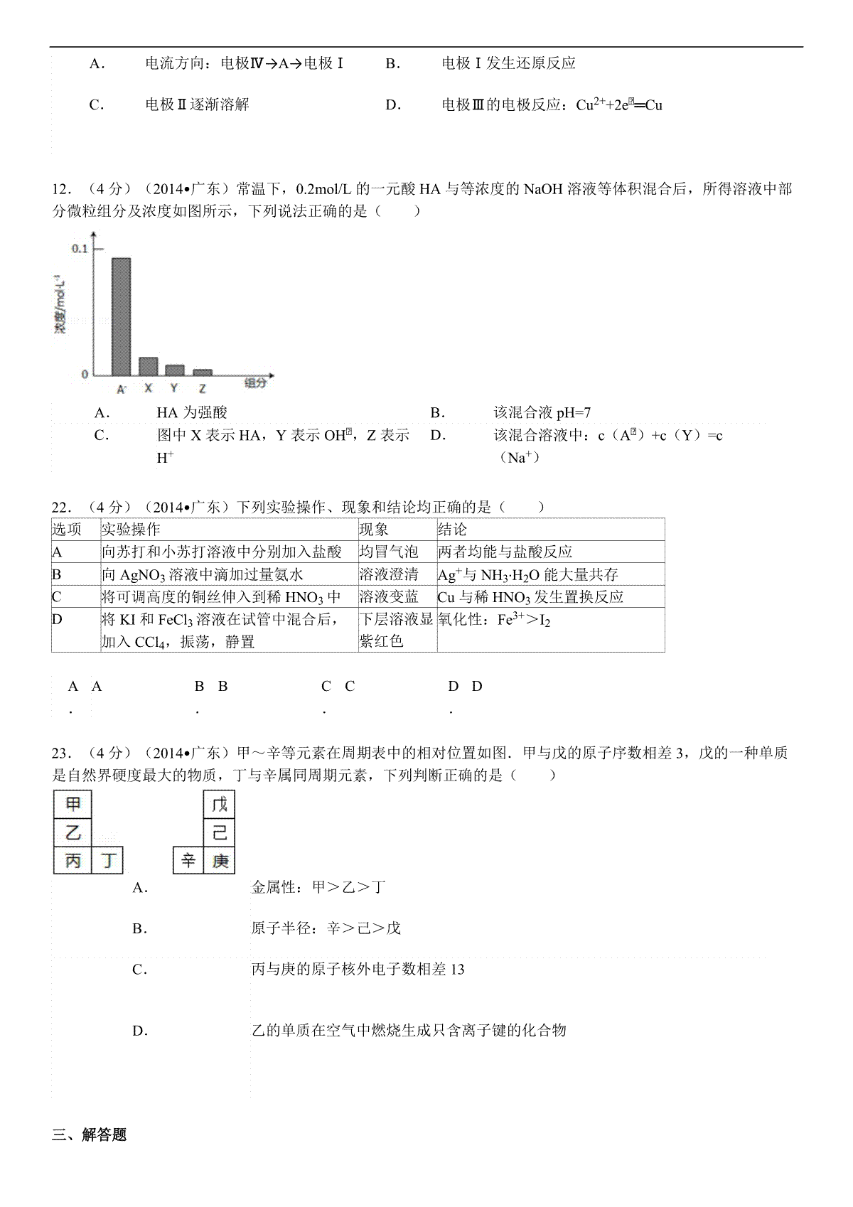 2014年广东高考化学(原卷版)是广大考生都在关注的,本站就为大家带来2014年广东高考化学(原卷版)试卷及答案解析详情,仅供考生参考。