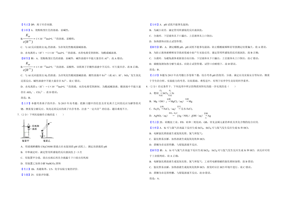 2015年江苏省高考化学试卷解析版 是广大考生都在关注的,本站就为大家带来2015年江苏省高考化学试卷解析版 试卷及答案解析详情,仅供考生参考。