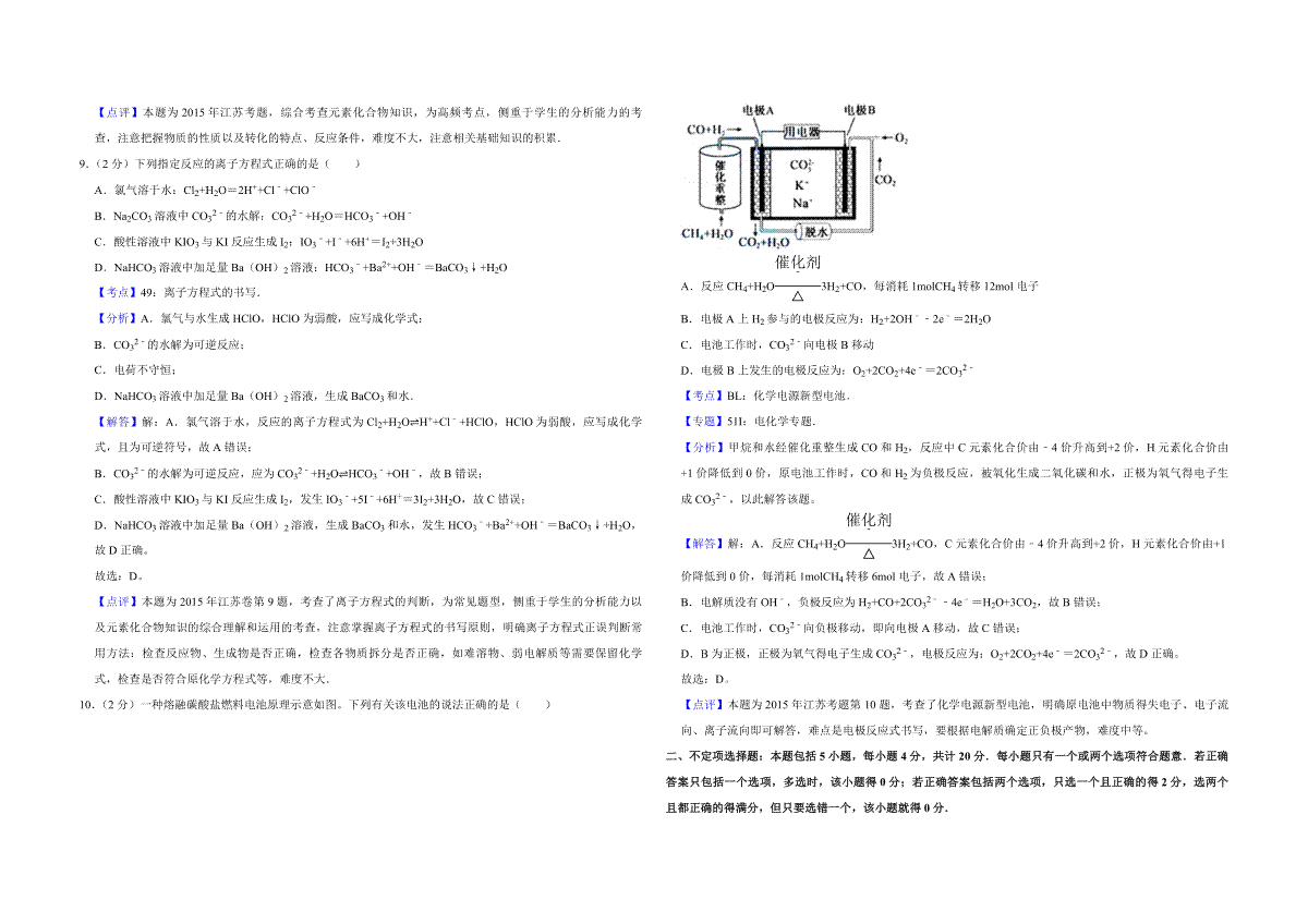 2015年江苏省高考化学试卷解析版 已公布,关注本站,本站会在2015年江苏省高考化学试卷解析版 试题及答案公布后为大家及时更新。