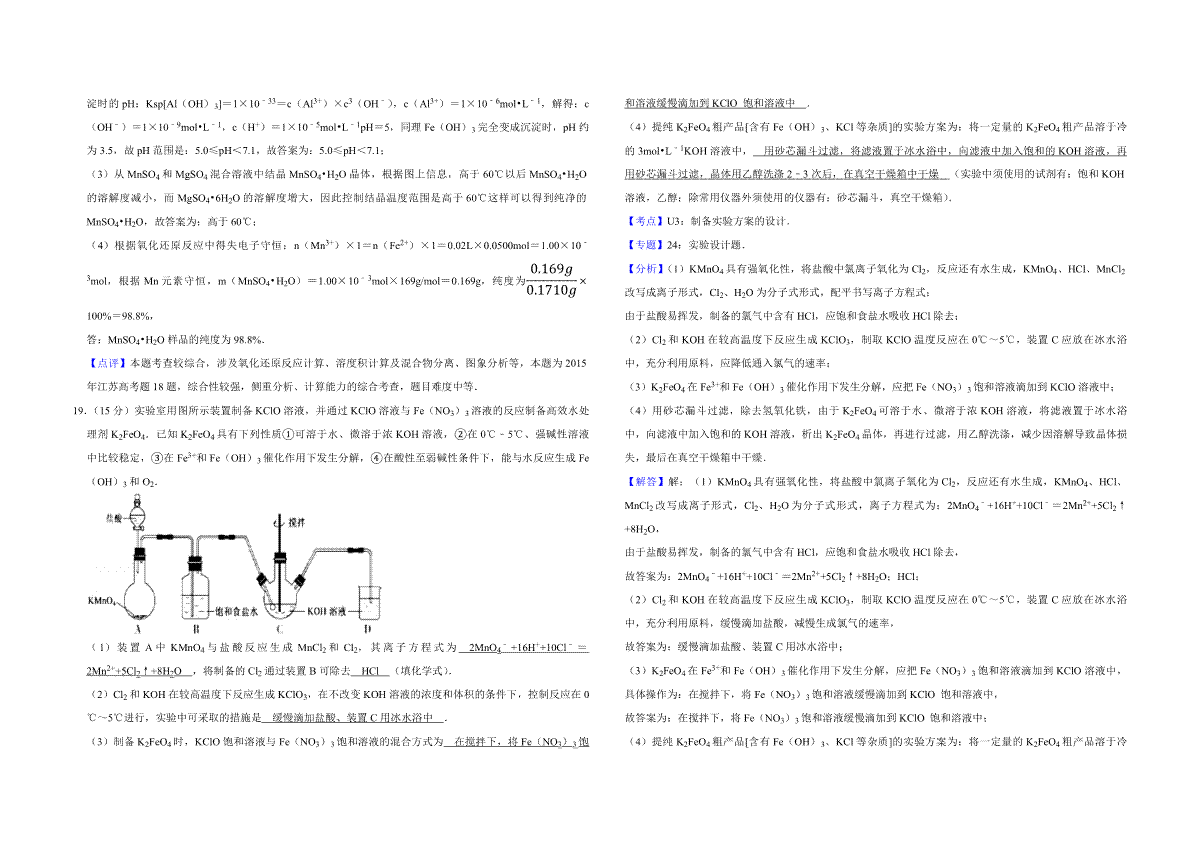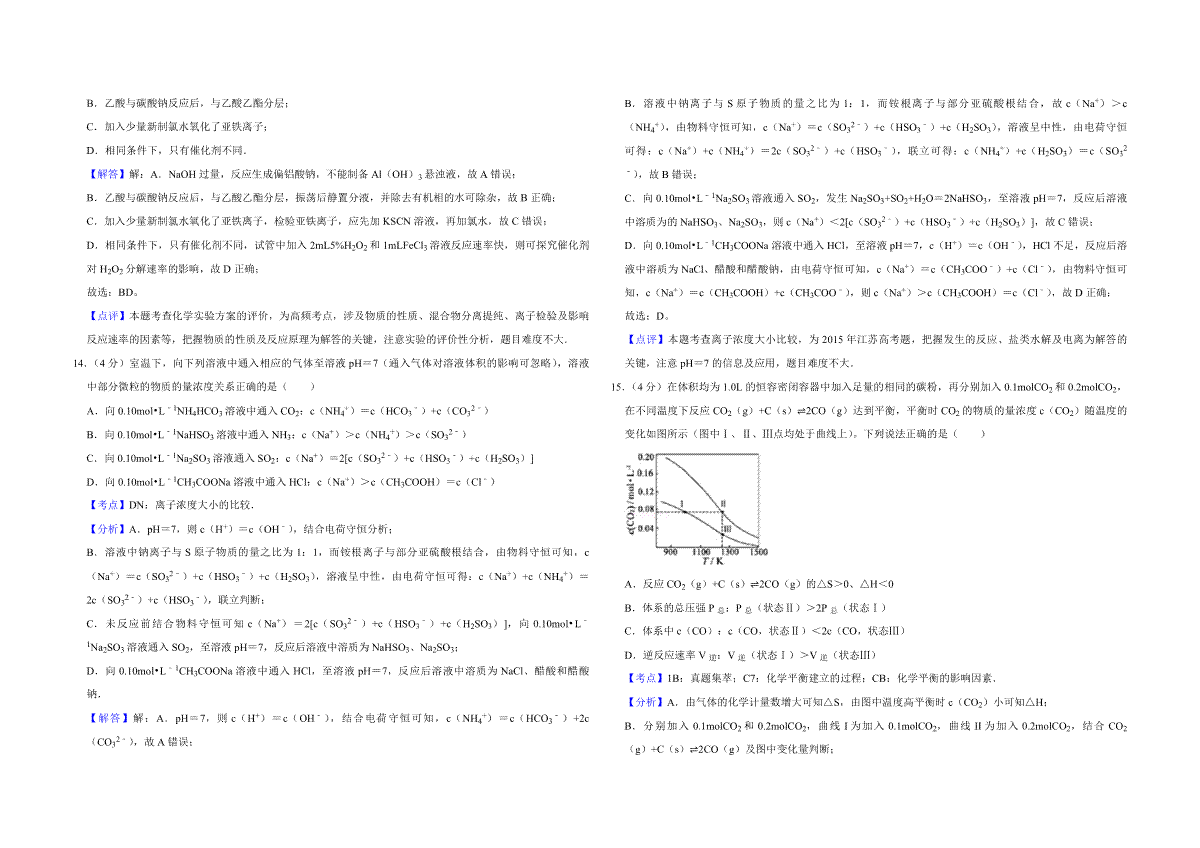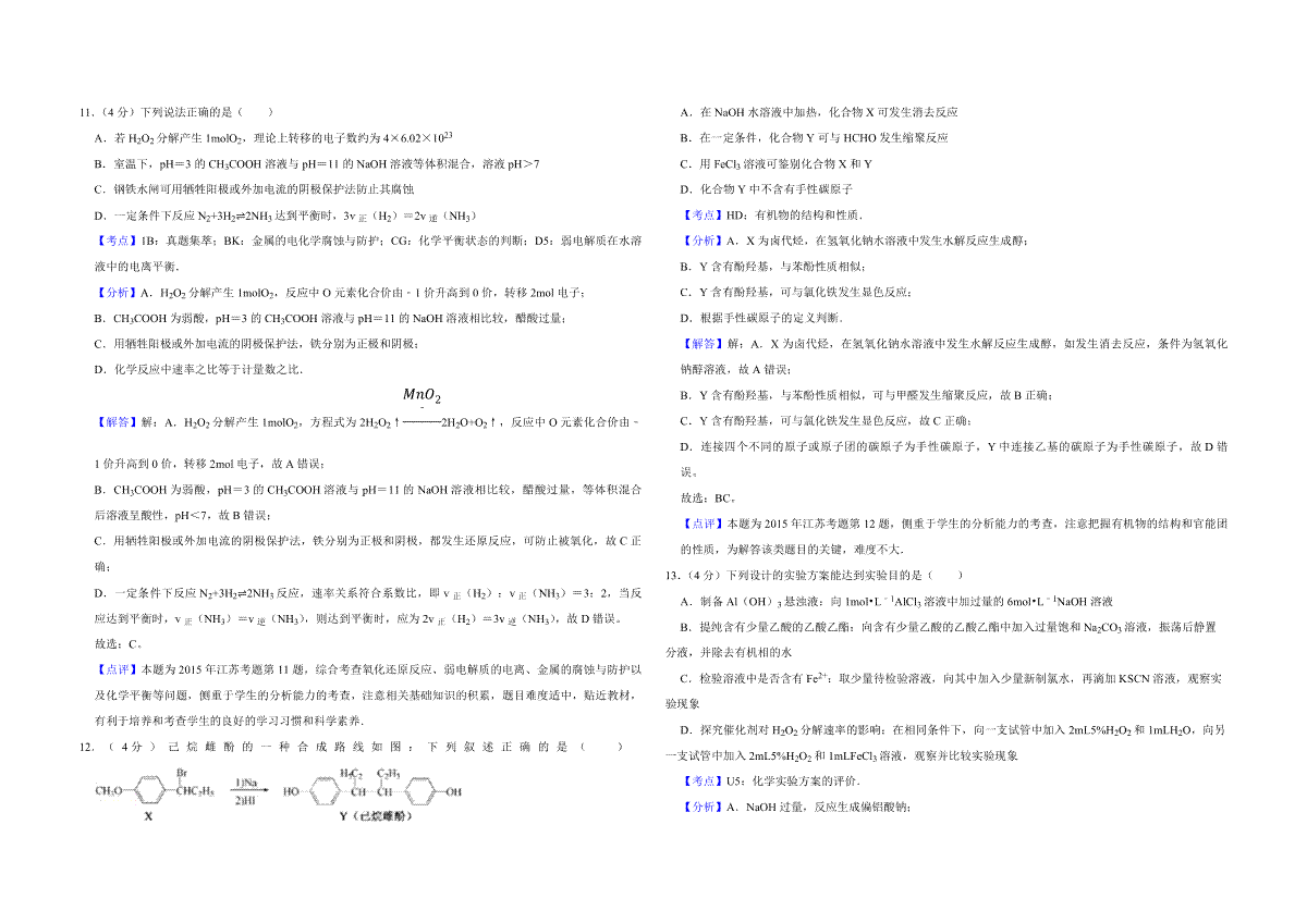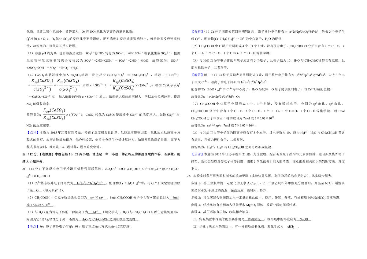 当前位置:爱高三高考资讯高考新闻2015年江苏省高考化学试卷解析版