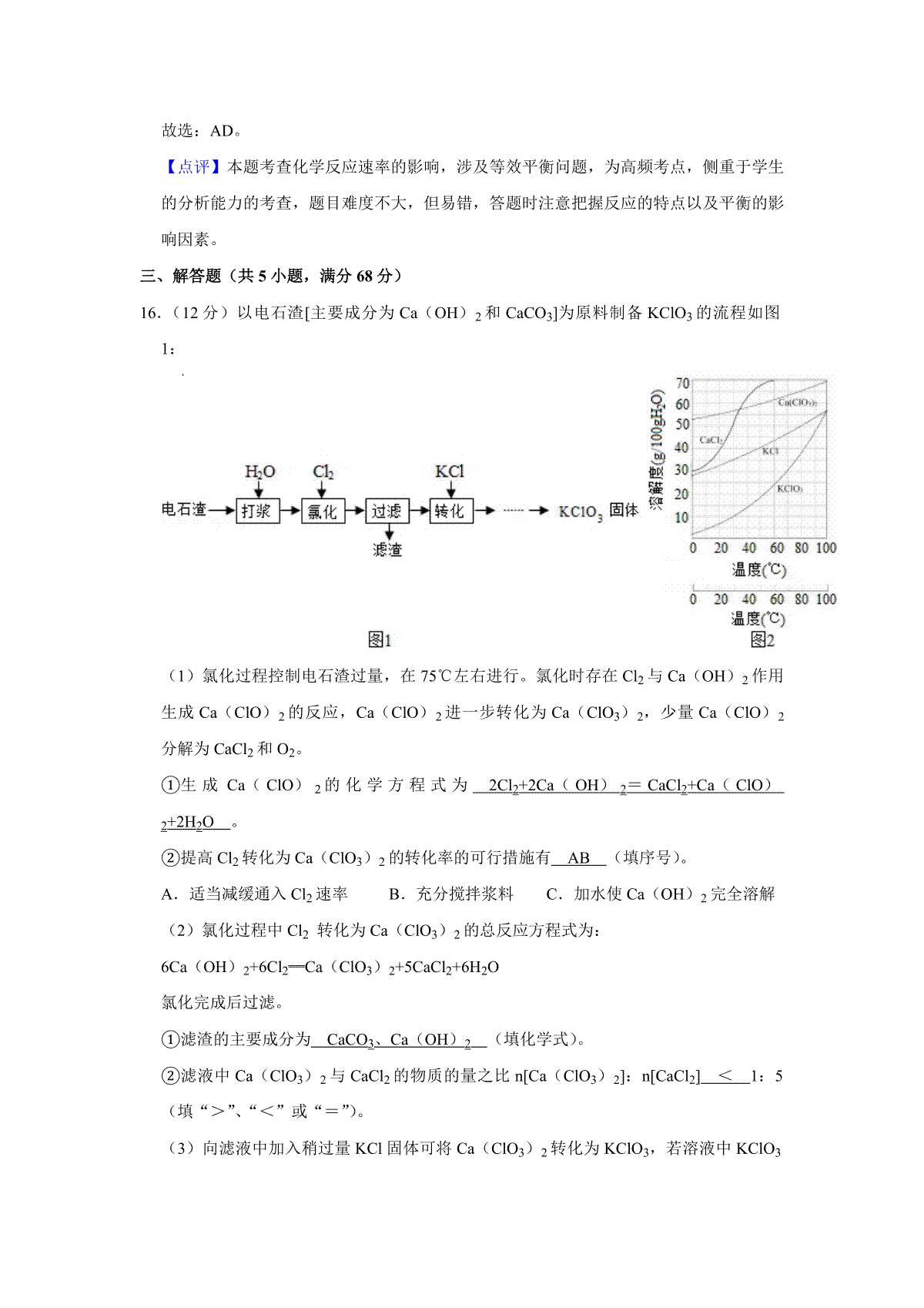 2016年江苏省高考化学试卷解析版