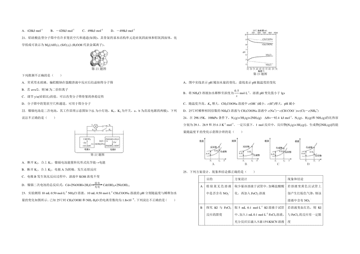 当前位置:爱高三高考资讯高考新闻2021年浙江省高考化学【1月】(含解析版)
