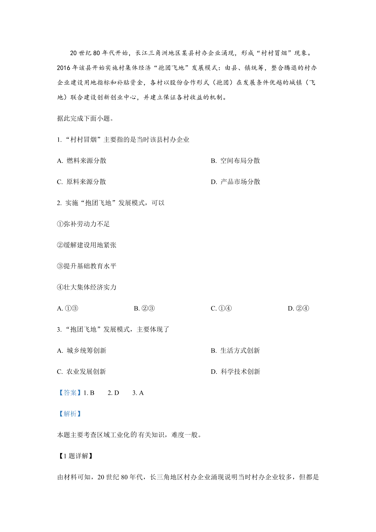 一、2019年广东高考地理试题及答案