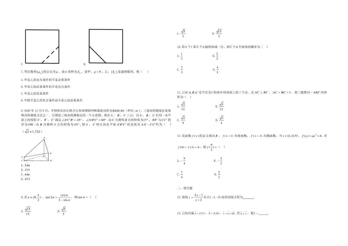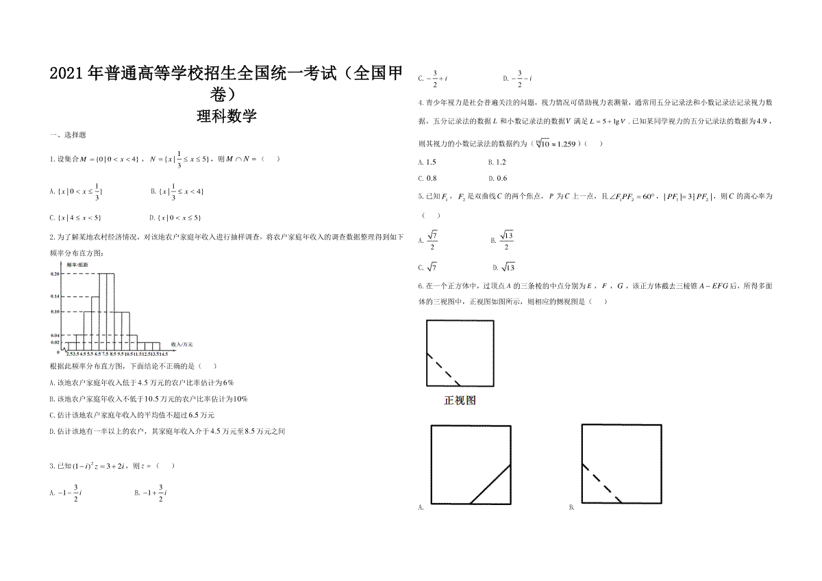 一、2021年全国统一高考数学试卷(理科)(新课标ⅲ)(原卷版)