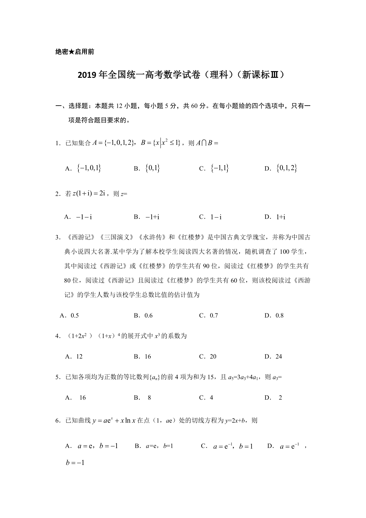 一、2019年全国统一高考数学试卷(理科)(新课标ⅲ)(含解析版)