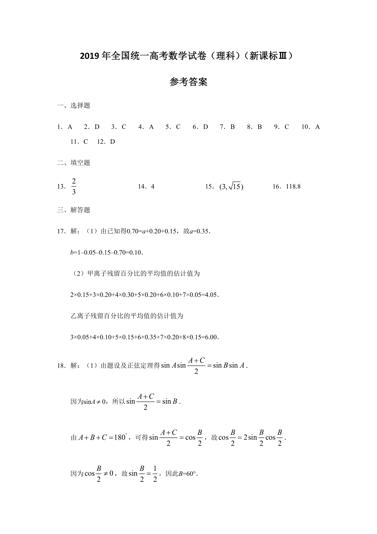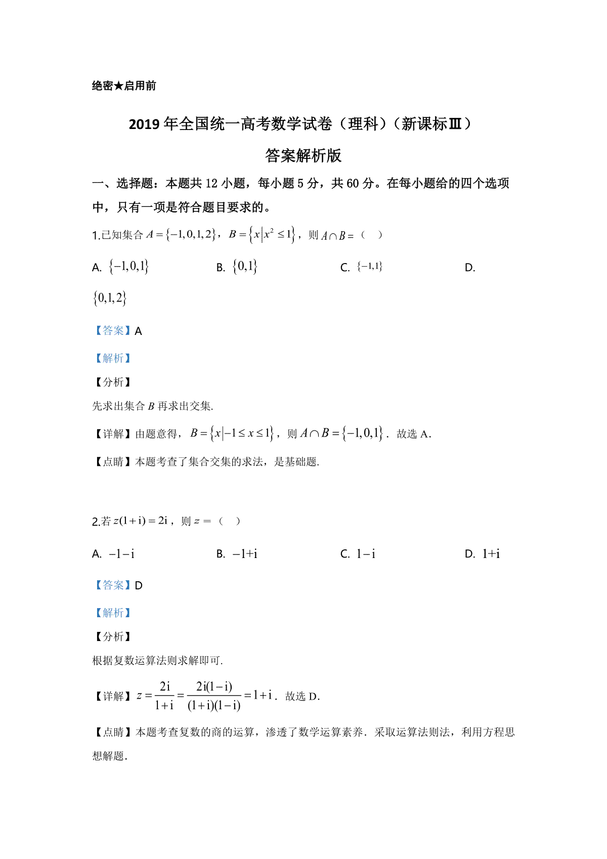 2019年全国统一高考数学试卷(理科)(新课标ⅲ)(含解析版)是广大考生都在关注的,本站就为大家带来2019年全国统一高考数学试卷(理科)(新课标ⅲ)(含解析版)试卷及答案解析详情,仅供考生参考。