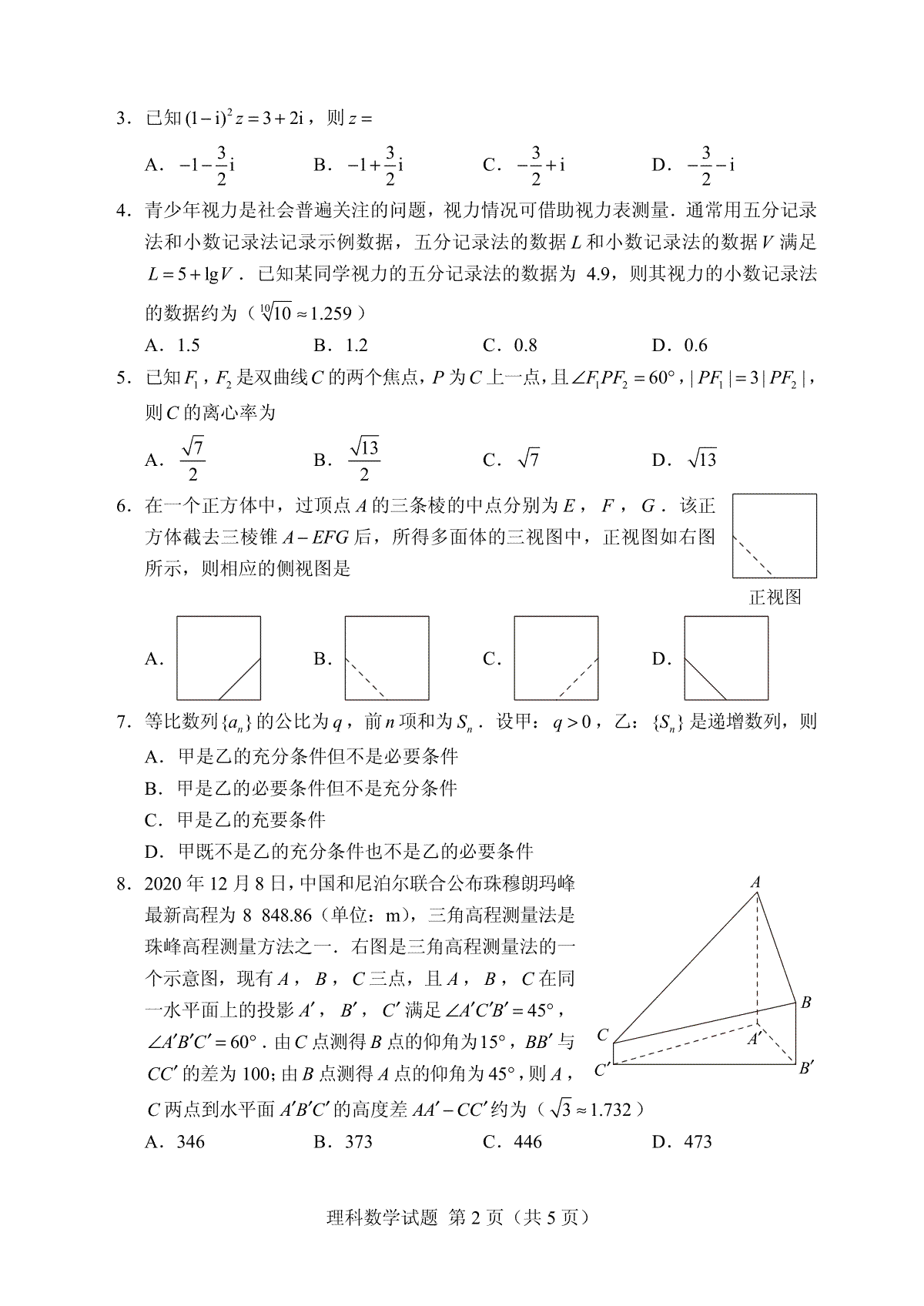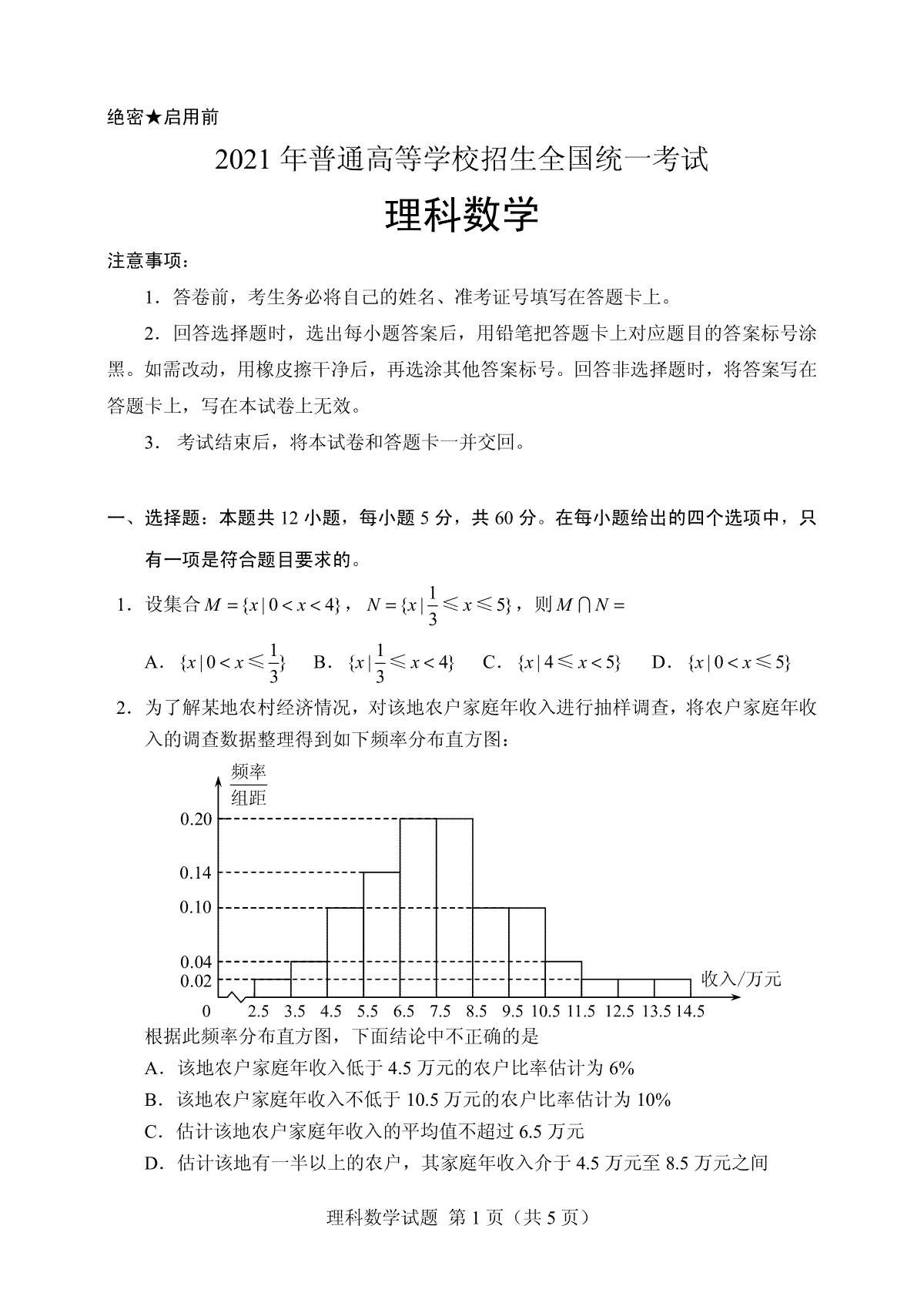 一、2021年全国统一高考数学试卷(理科)(新课标ⅲ)(原卷版)