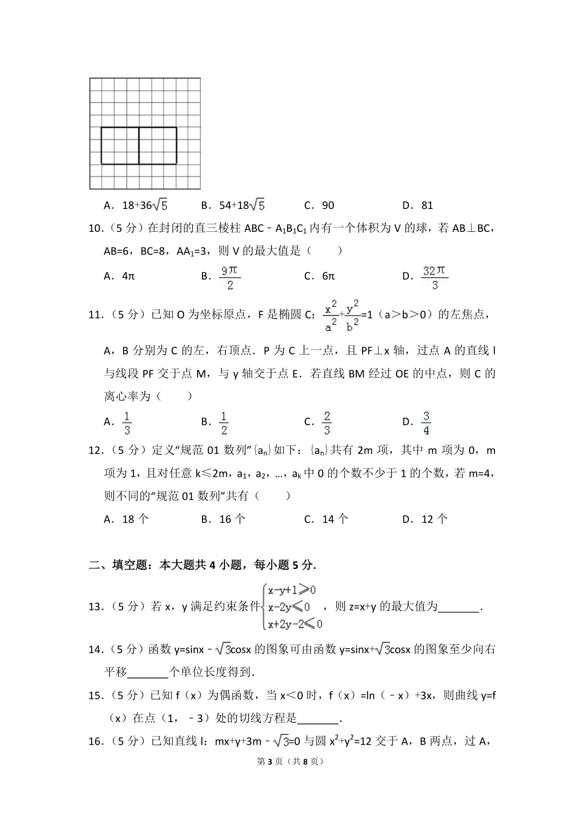 一、2016年全国统一高考数学试卷(理科)(新课标ⅲ)(原卷版)