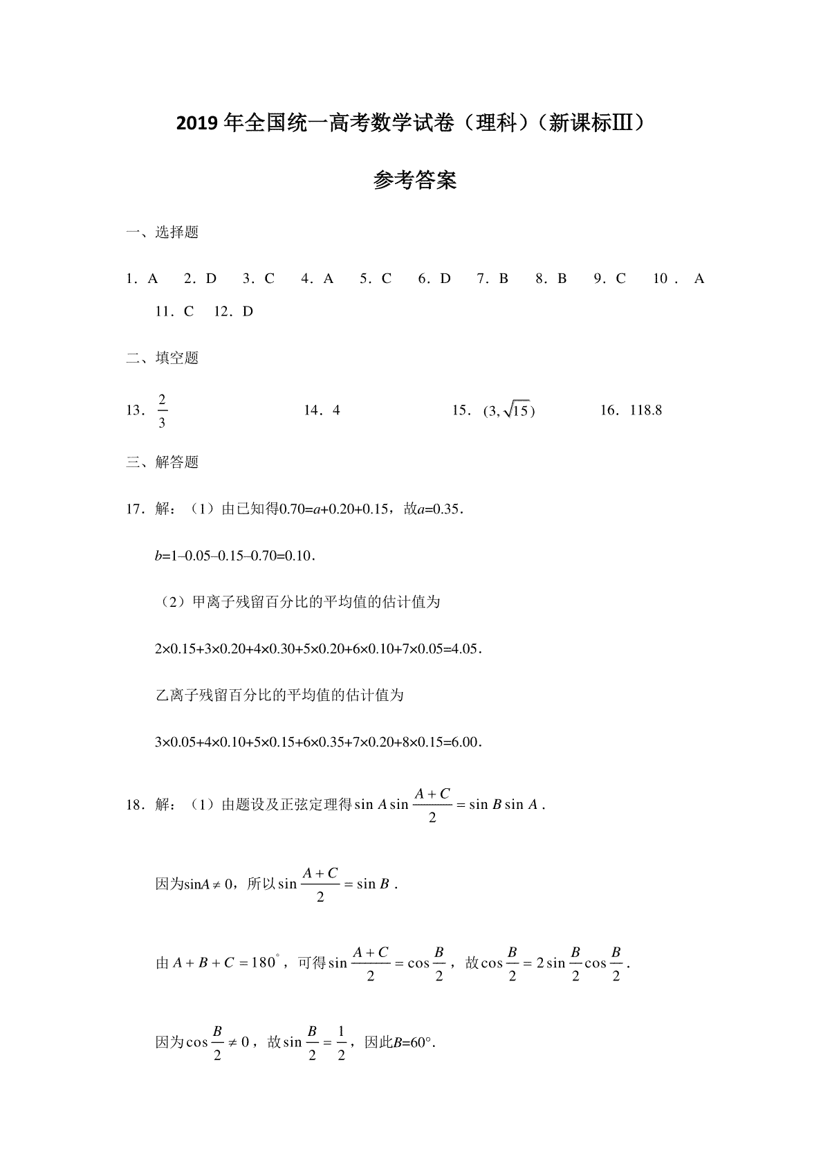 2019年全国统一高考数学试卷(理科)(新课标ⅲ)(含解析版)是广大考生都在关注的,本站就为大家带来2019年全国统一高考数学试卷(理科)(新课标ⅲ)(含解析版)试卷及答案解析详情,仅供考生参考。