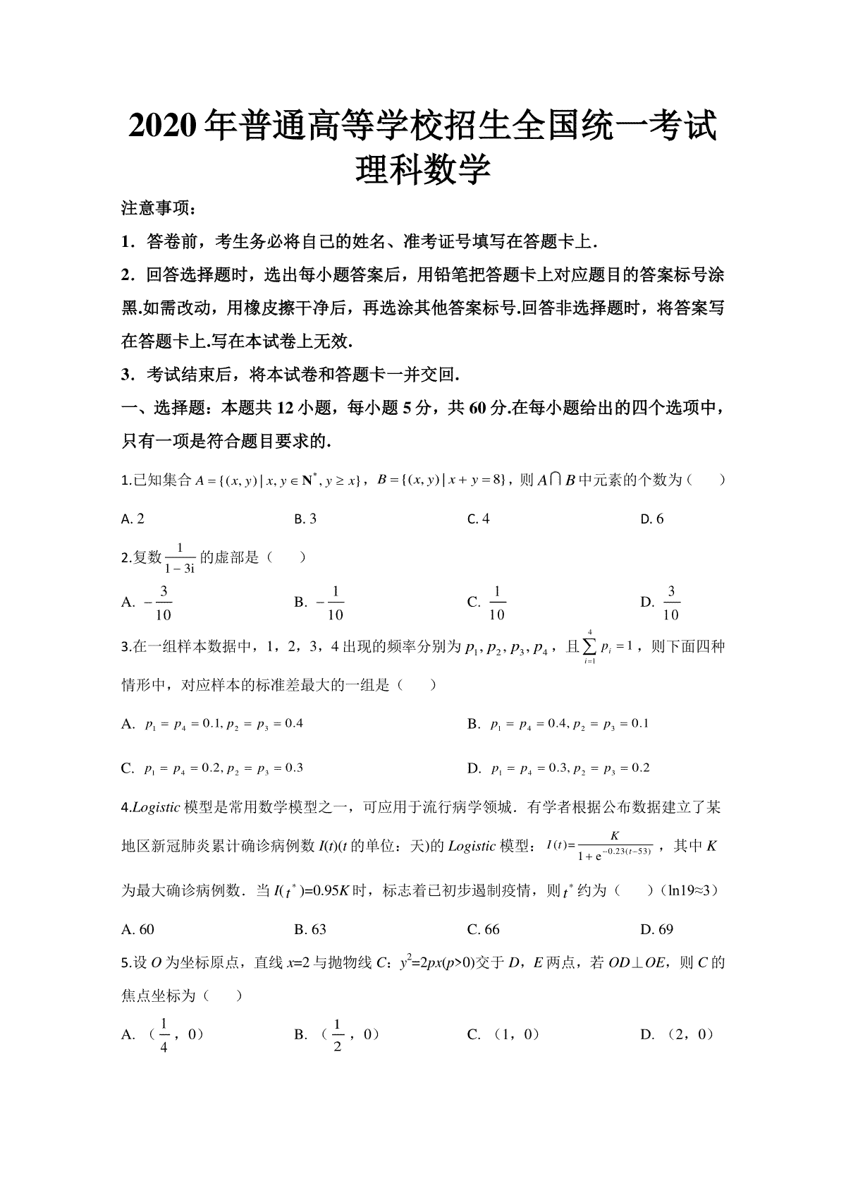一、2020年全国统一高考数学试卷(理科)(新课标ⅲ)(原卷版)(1)