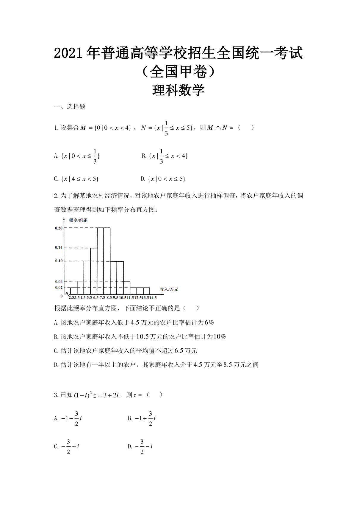一、2021年全国统一高考数学试卷(理科)(新课标ⅲ)(原卷版)