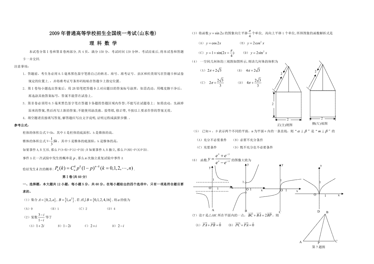 一、2009年高考真题数学【理】(山东卷)(原卷版)