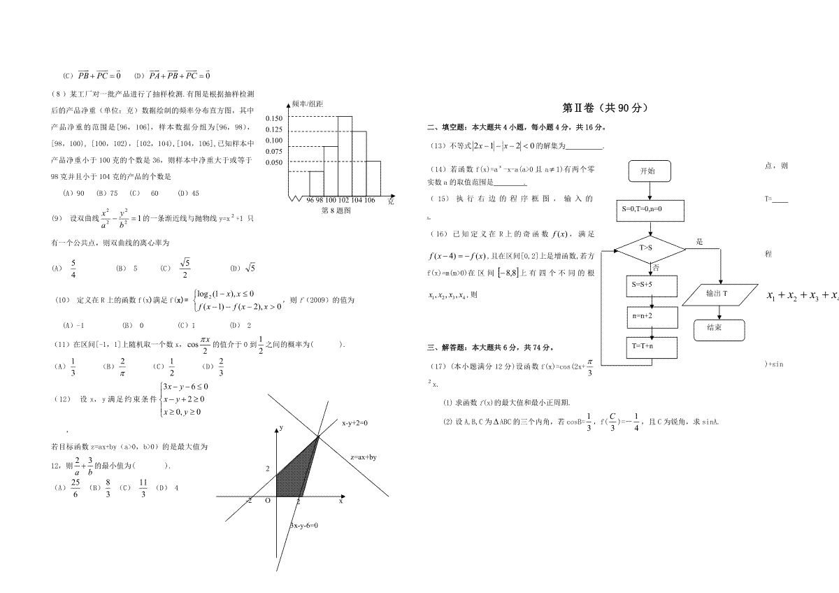 2009年高考真题数学【理】(山东卷)(原卷版)是广大考生都在关注的,本站就为大家带来2009年高考真题数学【理】(山东卷)(原卷版)试卷及答案解析详情,仅供考生参考。