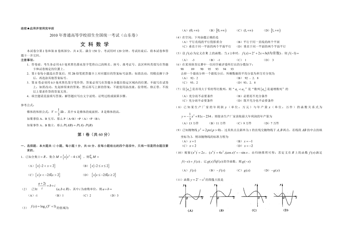 2010年高考真题数学【文】(山东卷)(含解析版)是广大考生都在关注的,本站就为大家带来2010年高考真题数学【文】(山东卷)(含解析版)试卷及答案解析详情,仅供考生参考。