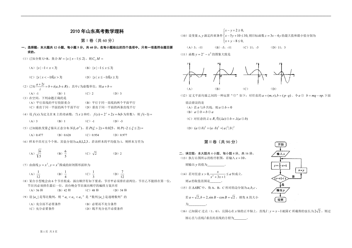 一、2010年高考真题数学【理】(山东卷)(原卷版)