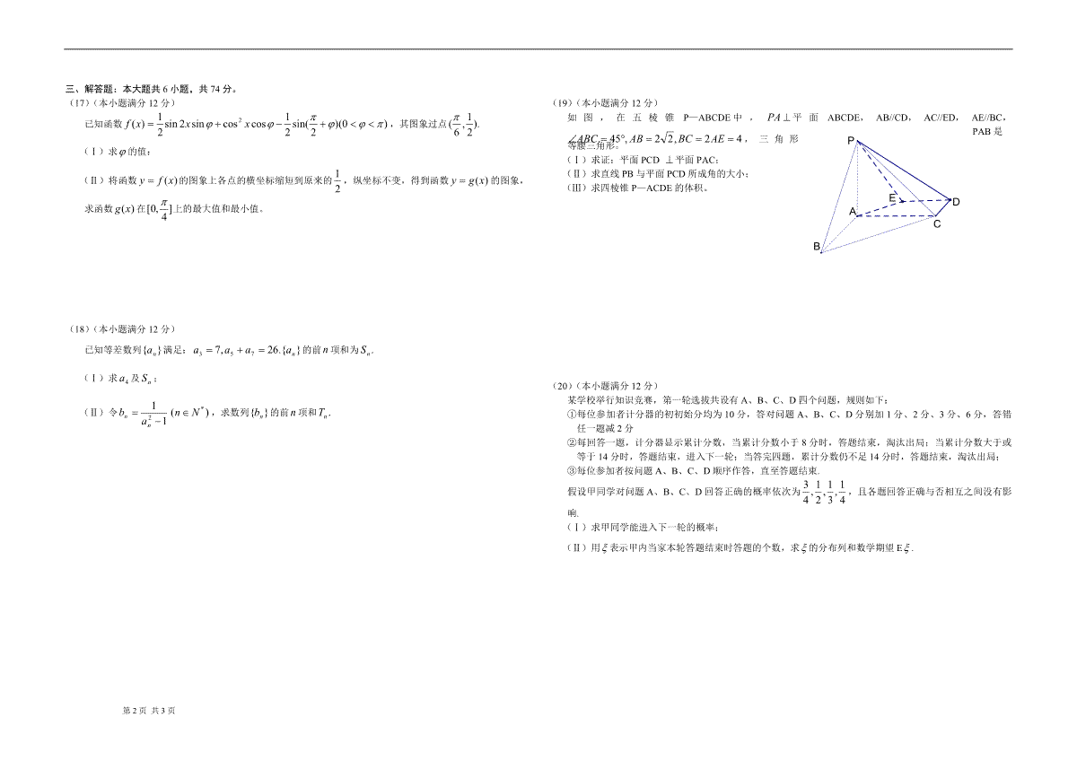 2010年高考真题数学【理】(山东卷)(原卷版)已公布,关注本站,本站会在2010年高考真题数学【理】(山东卷)(原卷版)试题及答案公布后为大家及时更新。
