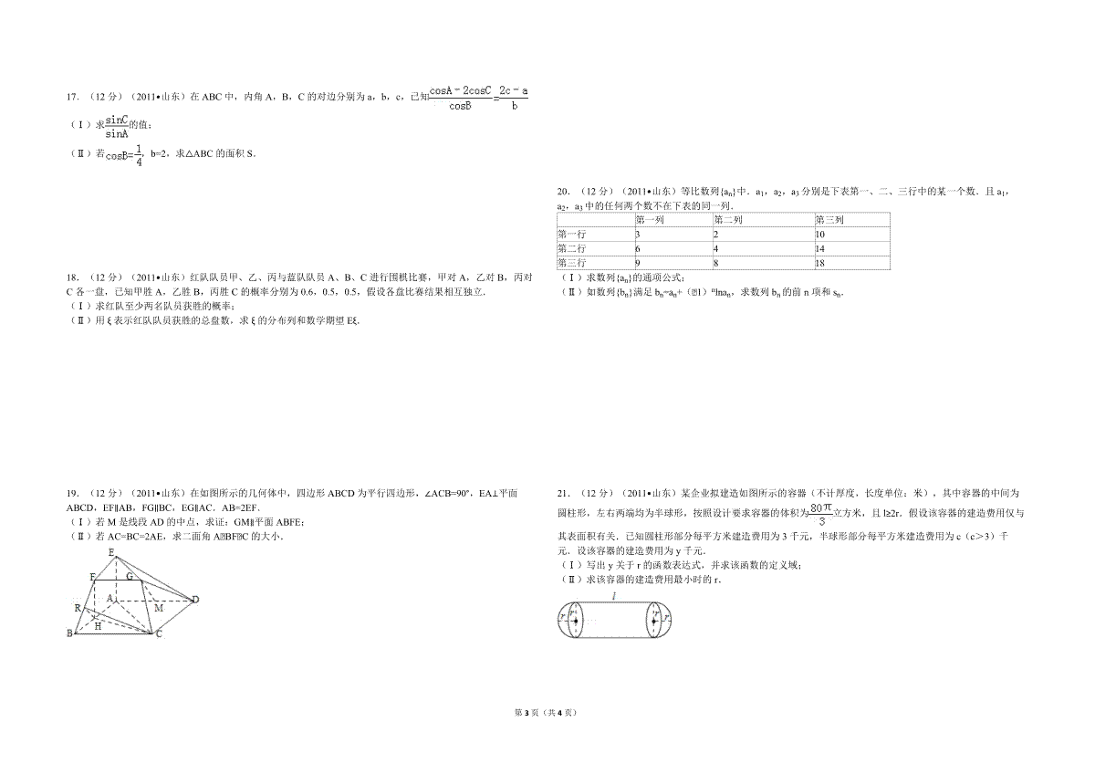 一、2011年高考真题数学【理】(山东卷)(原卷版)