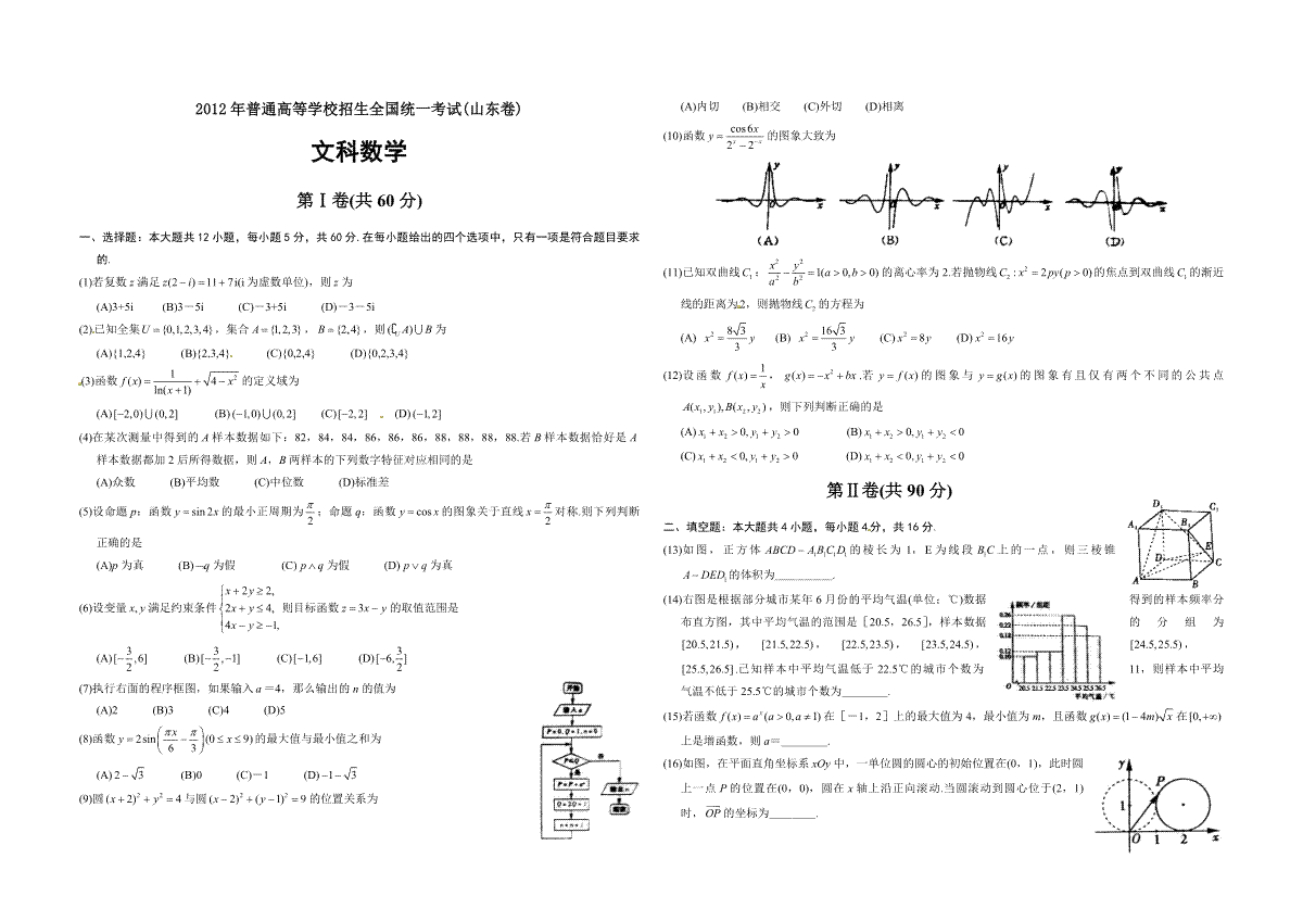 2012年高考真题数学【文】(山东卷)(含解析版)是广大考生都在关注的,本站就为大家带来2012年高考真题数学【文】(山东卷)(含解析版)试卷及答案解析详情,仅供考生参考。
