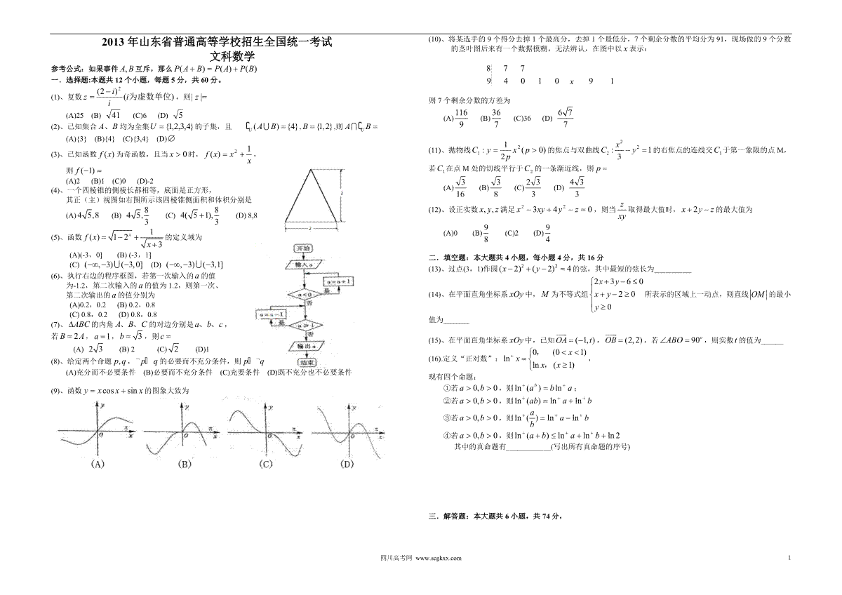 2013年高考真题数学【文】(山东卷)(含解析版)已公布,关注本站,本站会在2013年高考真题数学【文】(山东卷)(含解析版)试题及答案公布后为大家及时更新。