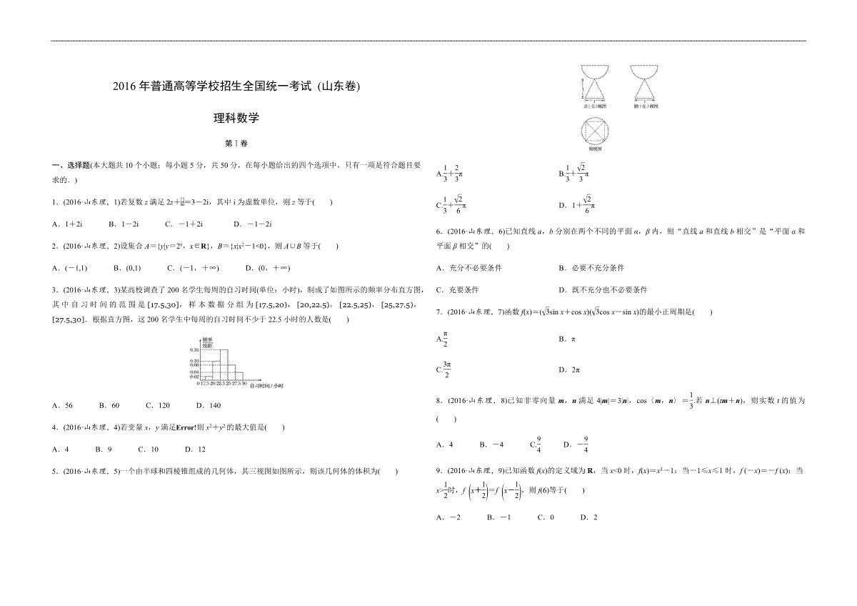一、2016年高考真题数学【理】(山东卷)(原卷版)