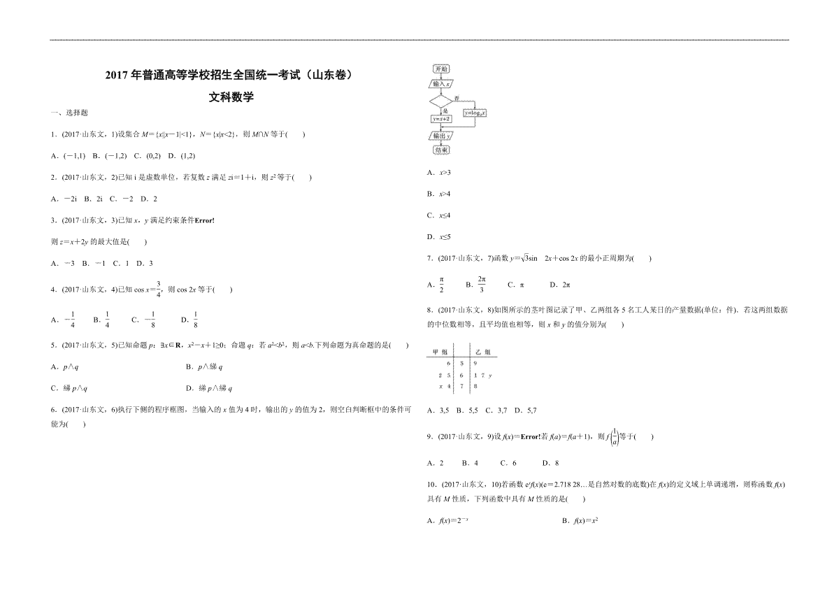 2017年高考真题数学【文】(山东卷)(含解析版)是广大考生都在关注的,本站就为大家带来2017年高考真题数学【文】(山东卷)(含解析版)试卷及答案解析详情,仅供考生参考。