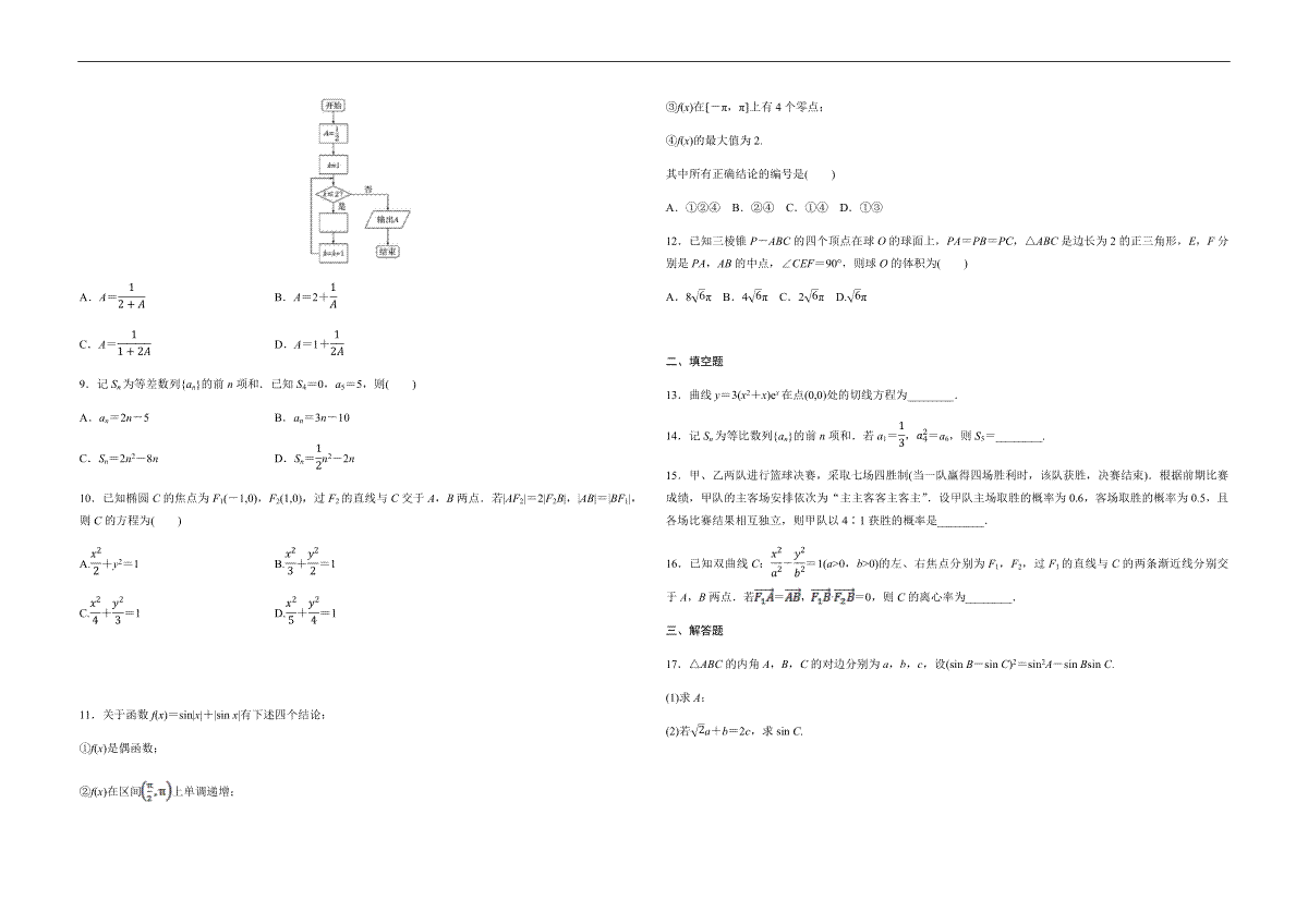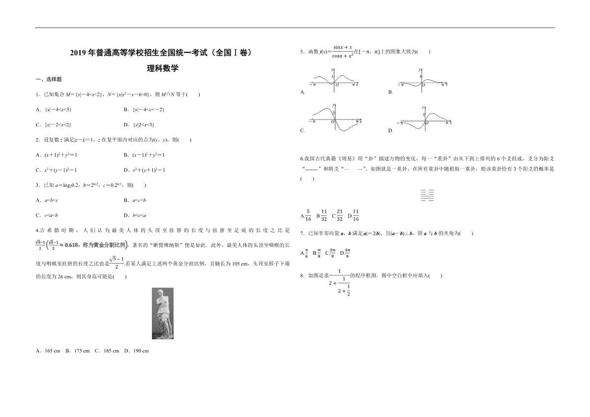 一、2019年高考真题数学【理】(山东卷)(原卷版)