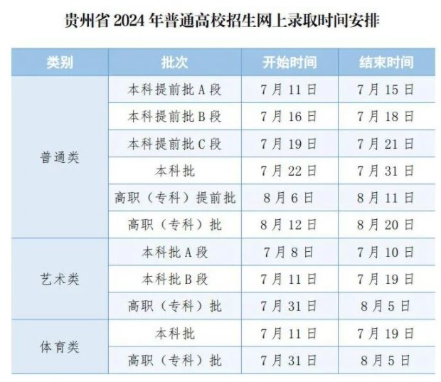 本科提前批次:7月8日至17日录取,其中,艺术类分为2小批;