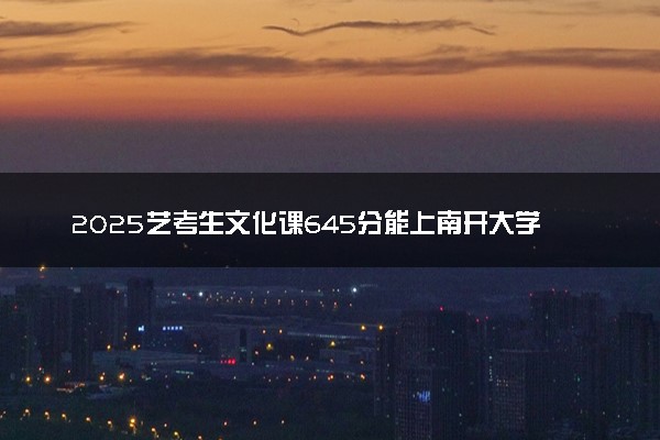 2025艺考生文化课645分有可能考上南开大学。南开大学艺考生的录取分数线是根据考生的高考总分、所在省份的控制分数线以及专业统考成绩综合决定的。考生在报考时需仔细查看具体的招生简章和分数线要求,确保符合报考条件。