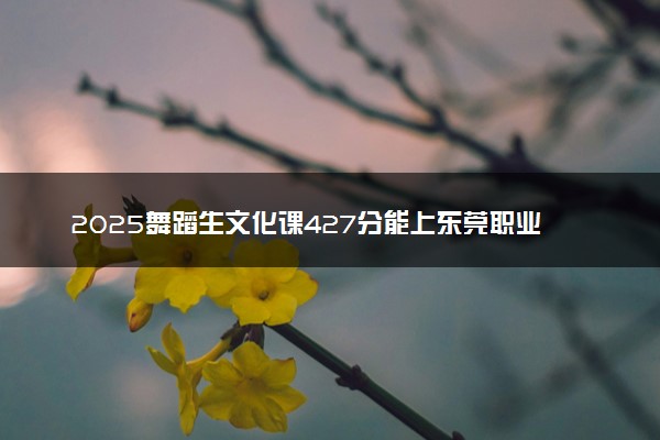 2025舞蹈生文化课427分有机会被东莞职业技术学院录取。文化课427分的舞蹈生选择院校专业时要根据自己擅长和爱好进行选择,可以参考东莞职业技术学院往年的录取情况和自身统考分、文化分对比,让分差控制在合理的波动区间。