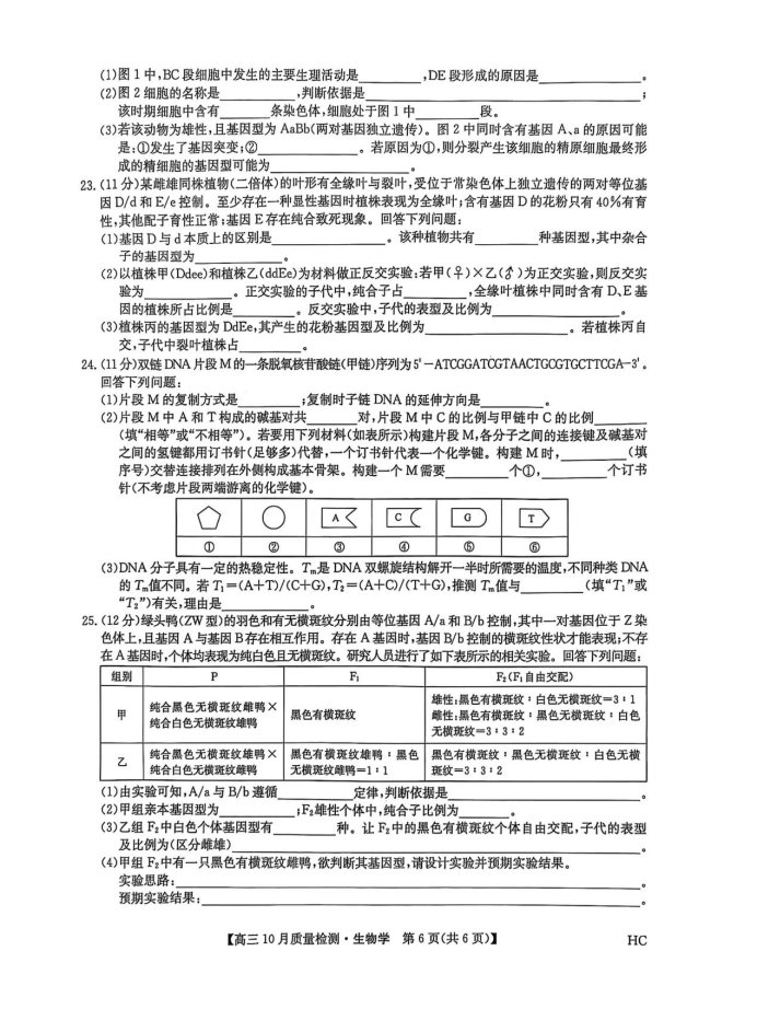 黑龙江省九师联盟2026学年高三上学期月考生物试题
