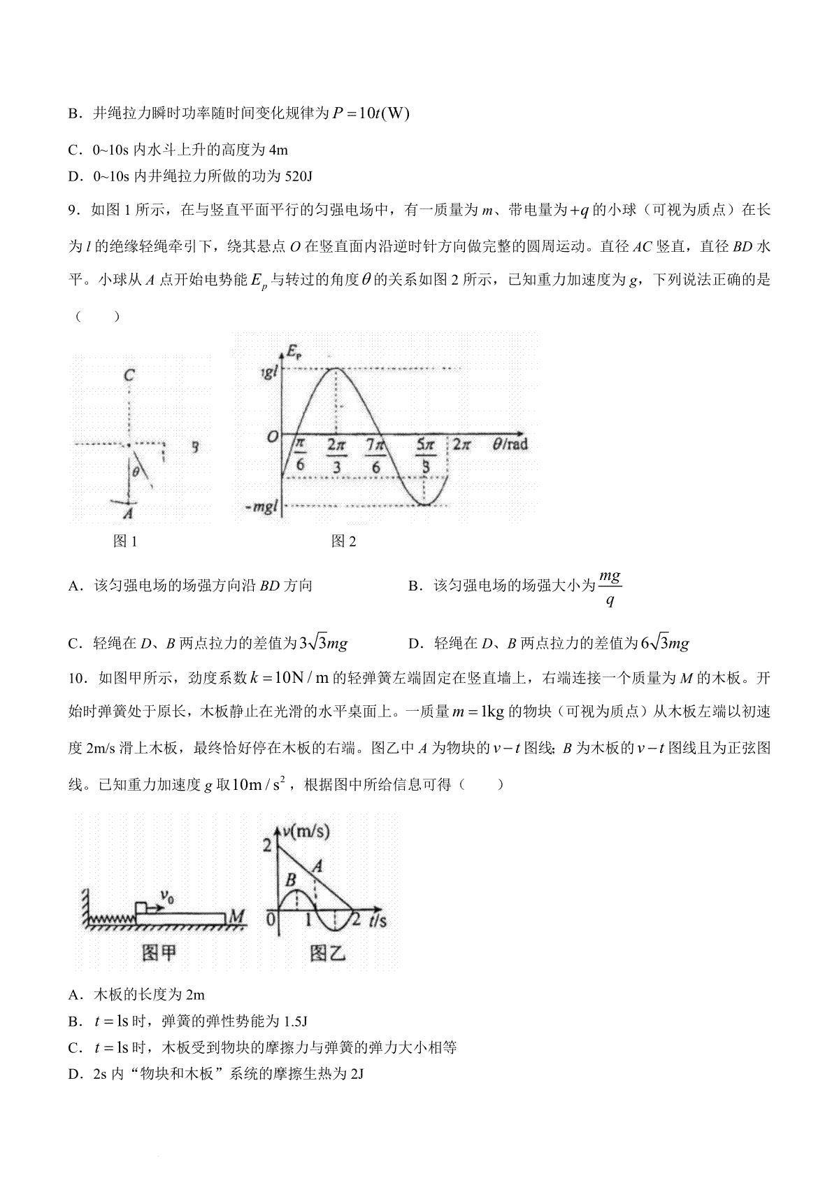 一、吉林省长春市东北师范大学附属中学2023-2024学年高三上学期第三次摸底考试 物理